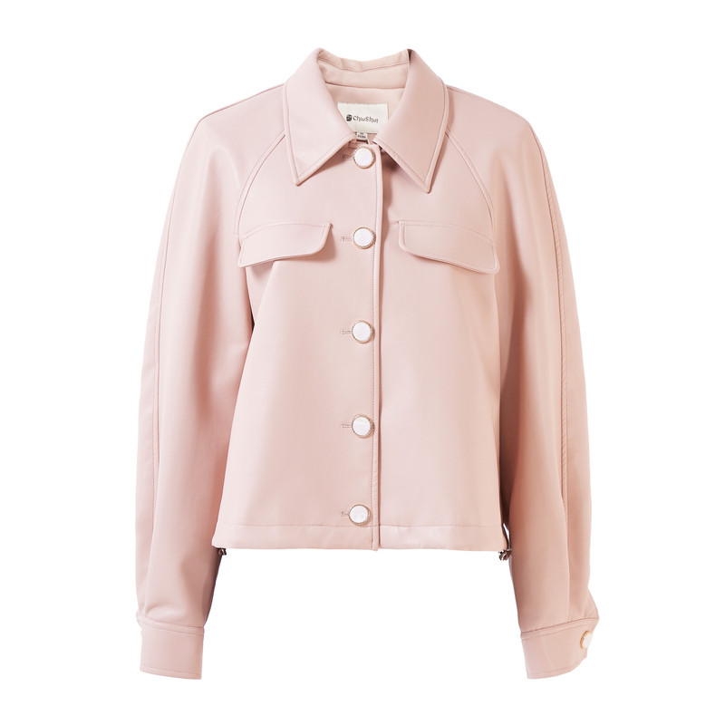淘太平鸟肌理荔枝纹PU皮衣外套女25年新款立体廓形夹克皮衣女