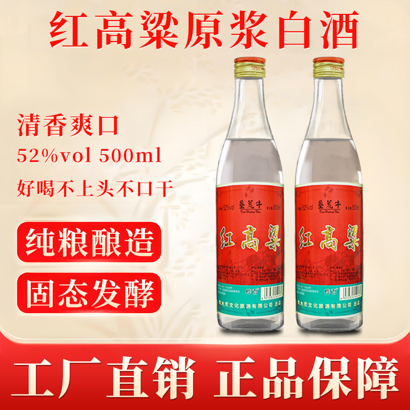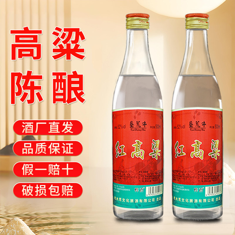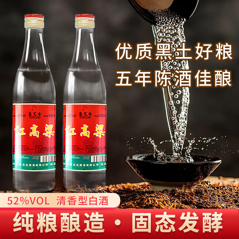 天猫6瓶装红高粱酒52度清香型纯粮白酒固态陈酿山西红高粱酒陈年老酒