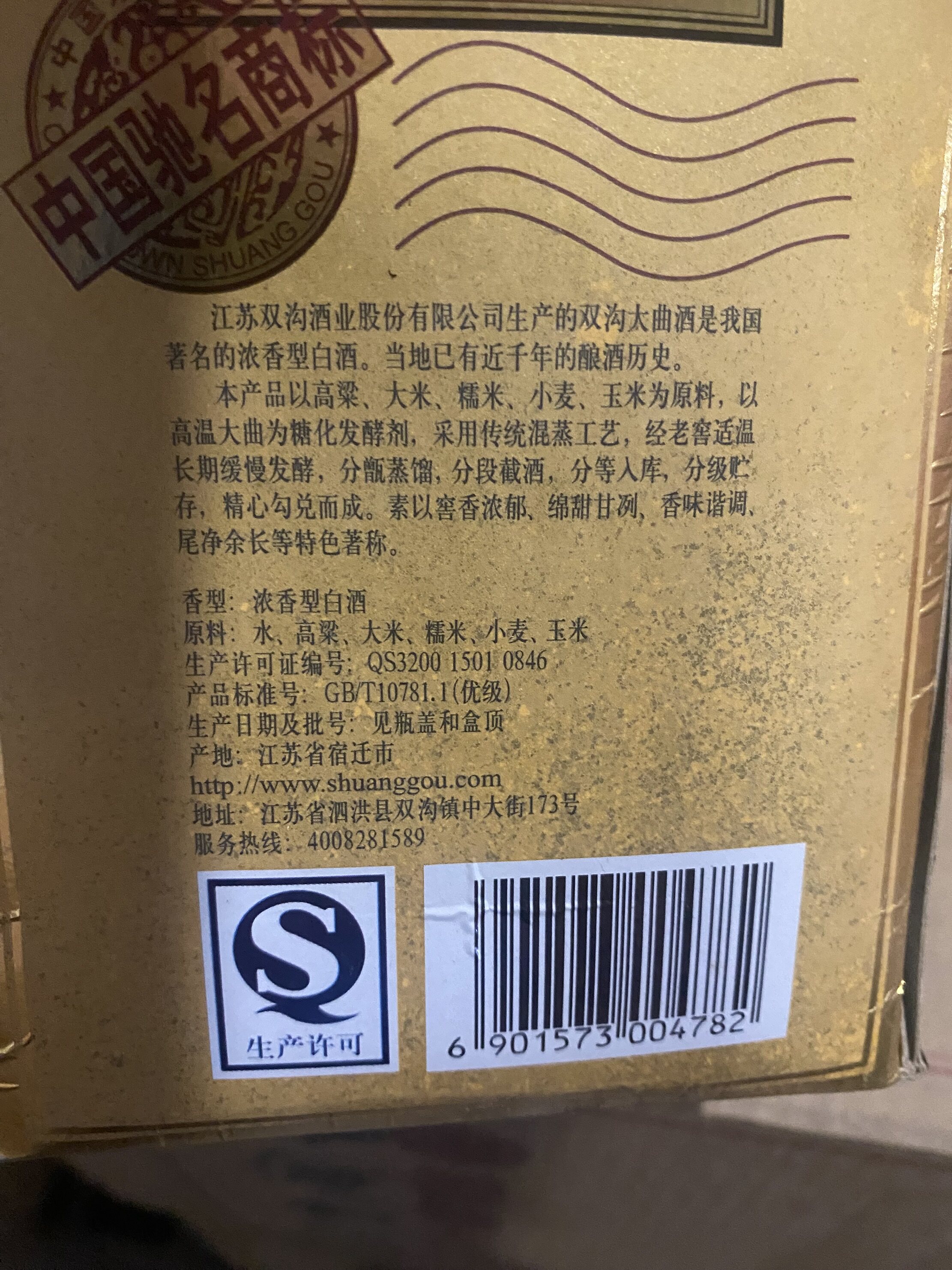 淘宝2012年46度双 沟大曲 500ml 浓香型 陈年老酒收藏