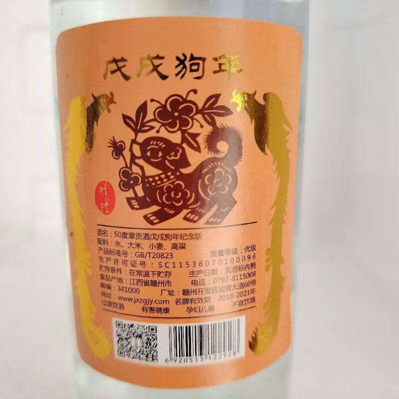 淘宝两瓶特惠2018年陈年老酒狗年生肖光瓶章贡王酒50度500ml*2特价