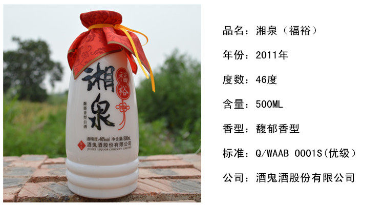 淘宝2011年湘泉酒46度简装白瓷瓶500ml馥郁香型白酒陈年库存老酒