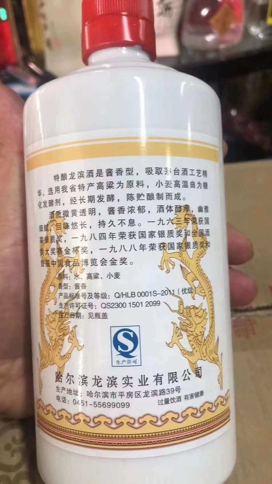 【一箱六瓶】2015年53度龙滨特酿500ml,精选优质高粱、小麦为原料,采用传统酱香型白酒工艺纯粮固态发酵,历经多年窖藏陈化,酒体醇厚丰满,酱香突出,口感绵甜爽净,回味悠长。作为2015年推出的中国优质酒,龙滨特酿严格遵循古法酿造,不添加任何外来物质,充分展现酱香型白酒的独特风韵。53度黄金酒精度,使酒体更加协调稳定,适合自饮、收藏或馈赠佳品。整箱六瓶装,包装典雅大气,彰显品质与品位,是品味传统酱香美酒的理想之选。