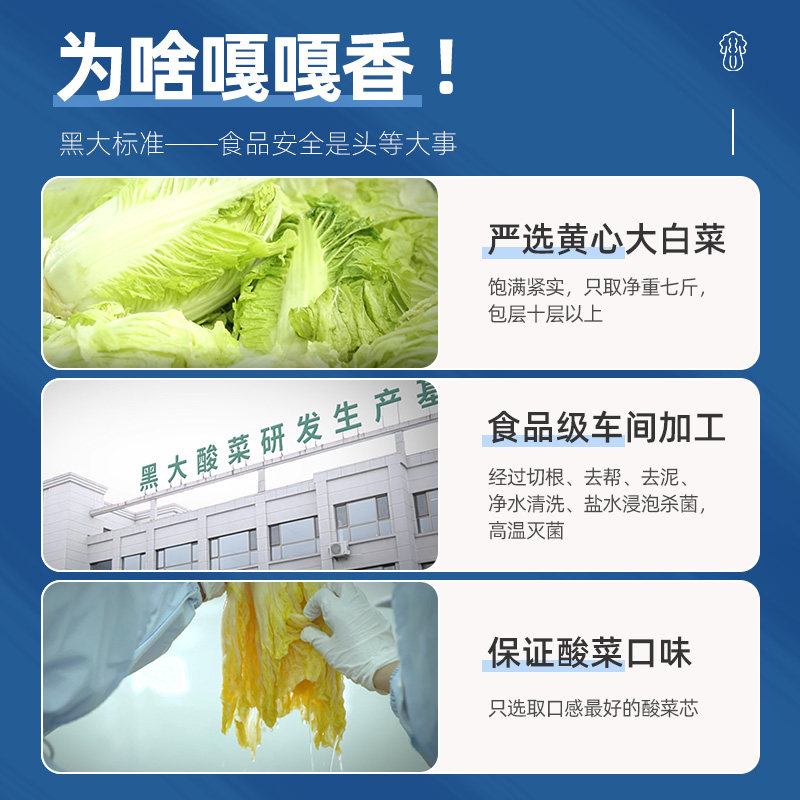 正宗东北酸菜,精选黑土地优质大白菜,传统手工腌制,口感酸爽脆嫩,风味地道。采用巴氏灭菌工艺,安全卫生,保留原有营养与风味,开袋即食或烹饪皆宜。本品为东北特产,尤以“酸菜丝”与“酸白菜心”最受欢迎,无论是炖汤、炒制还是包饺子,皆能提味增香。全程冷链包装,确保新鲜送达,全国包邮。黑大出品,品质保证,让您在家也能品尝到纯正的东北家乡味。地道工艺,自然发酵,无添加防腐剂,健康美味两相宜。是家庭餐桌、馈赠亲友的理想选择。