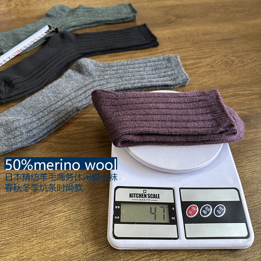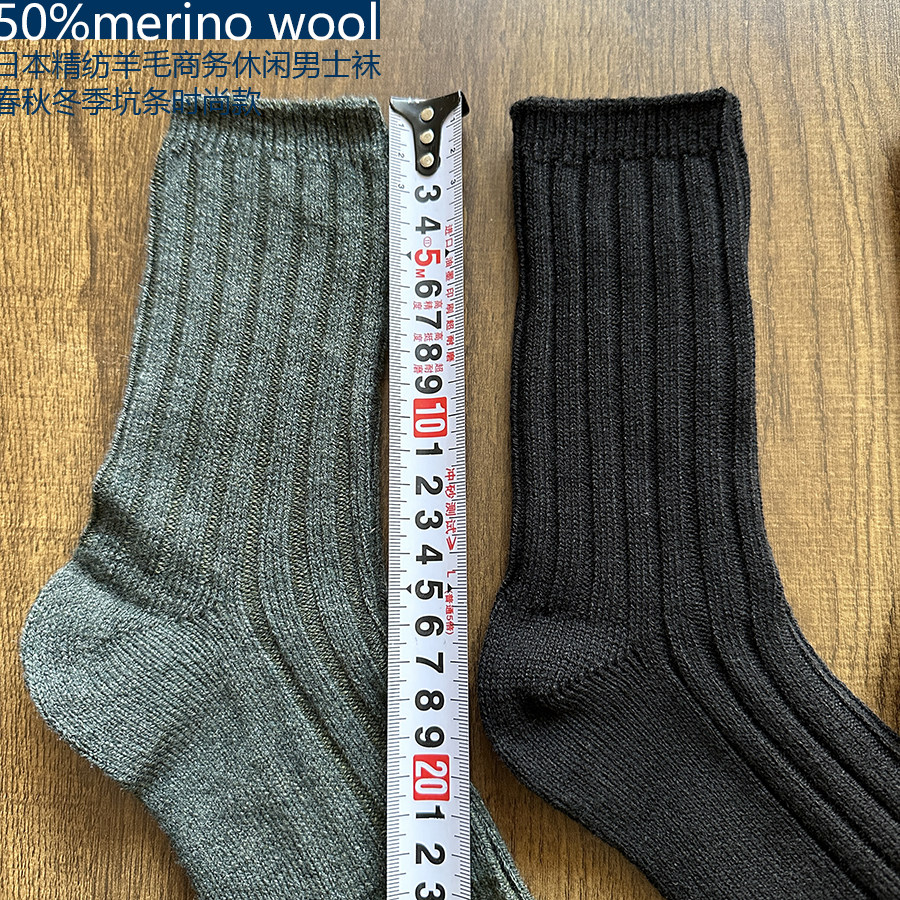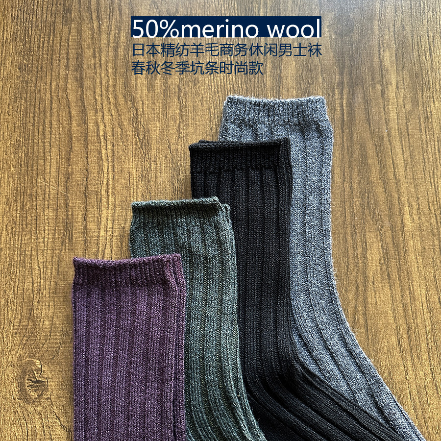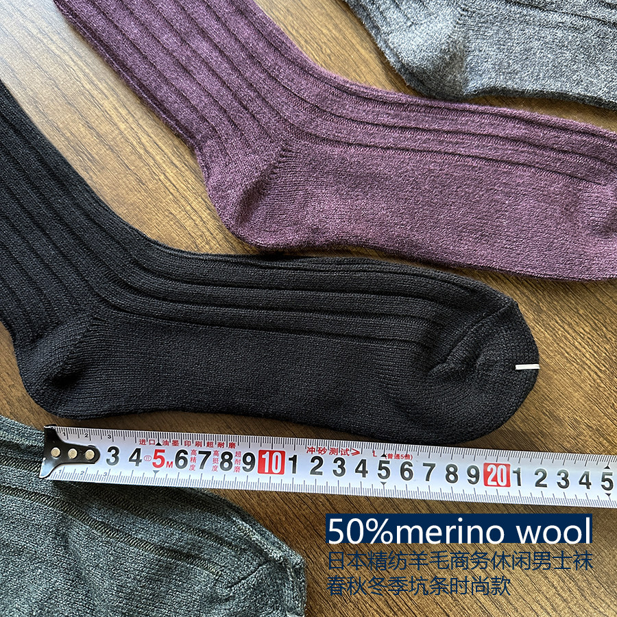 淘宝美利奴羊毛男袜春秋冬日本精纺坑条商务袜西装袜百搭极简男士袜子