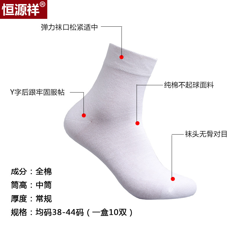 淘宝恒源祥男袜白色袜子男秋季中筒袜防臭运动袜男士短袜四季商务棉袜