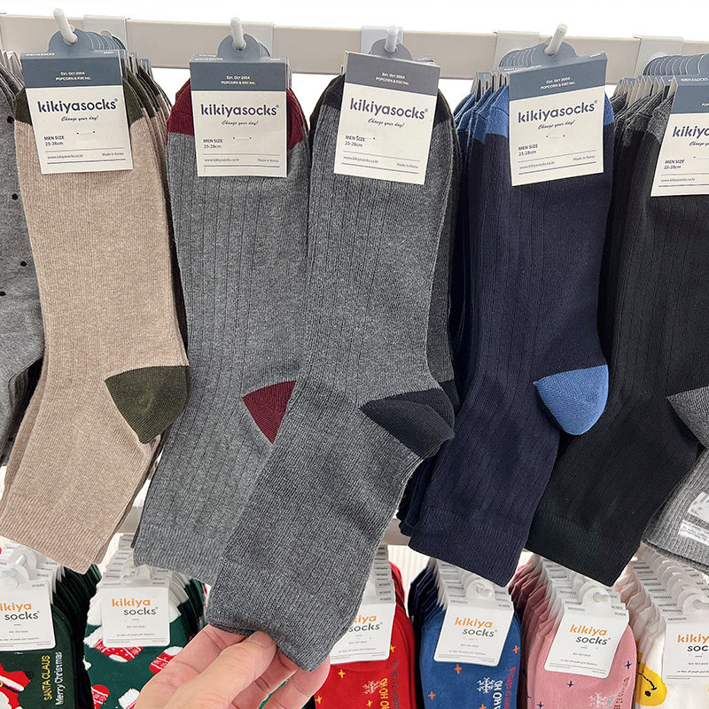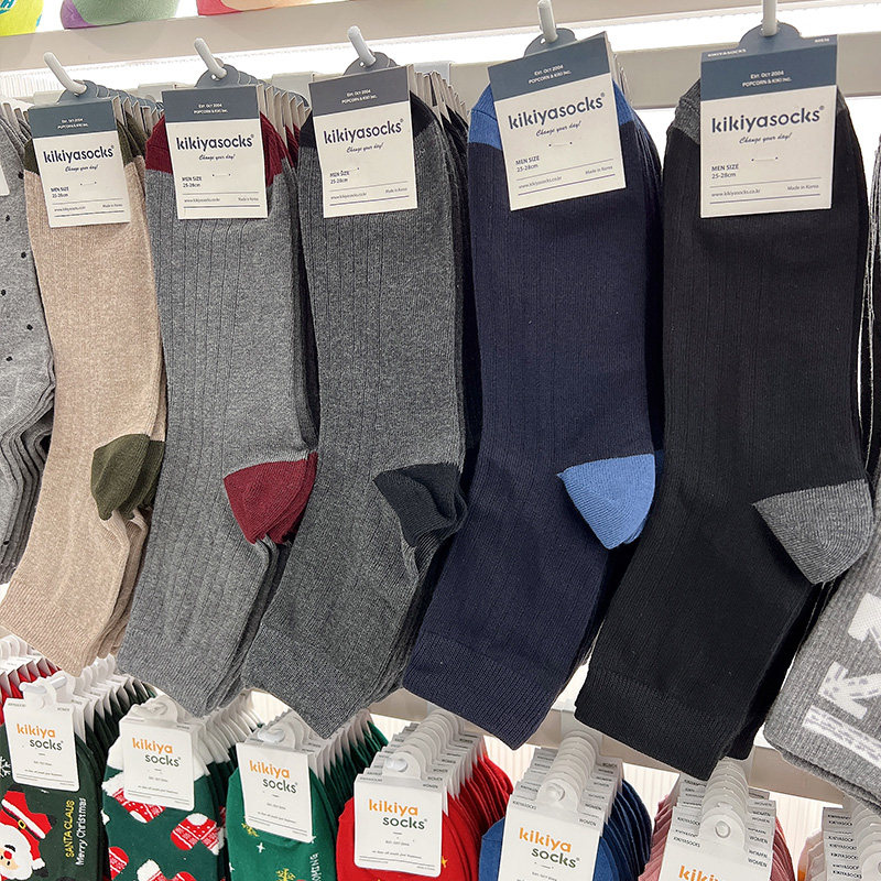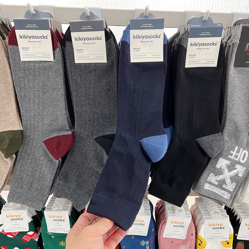 淘宝正品韩国男袜东大门kikiyasocks拼色简约吸汗商务棉袜男士中筒袜