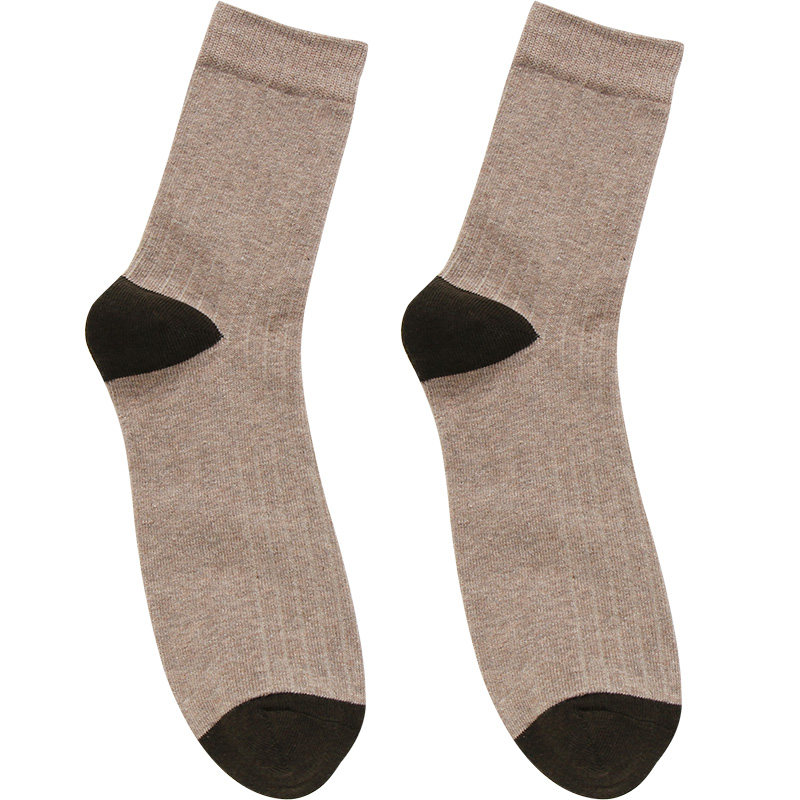 中筒男袜双针秋冬季加厚纯棉袜纯色吸汗商务男款防臭抗菌长棉袜