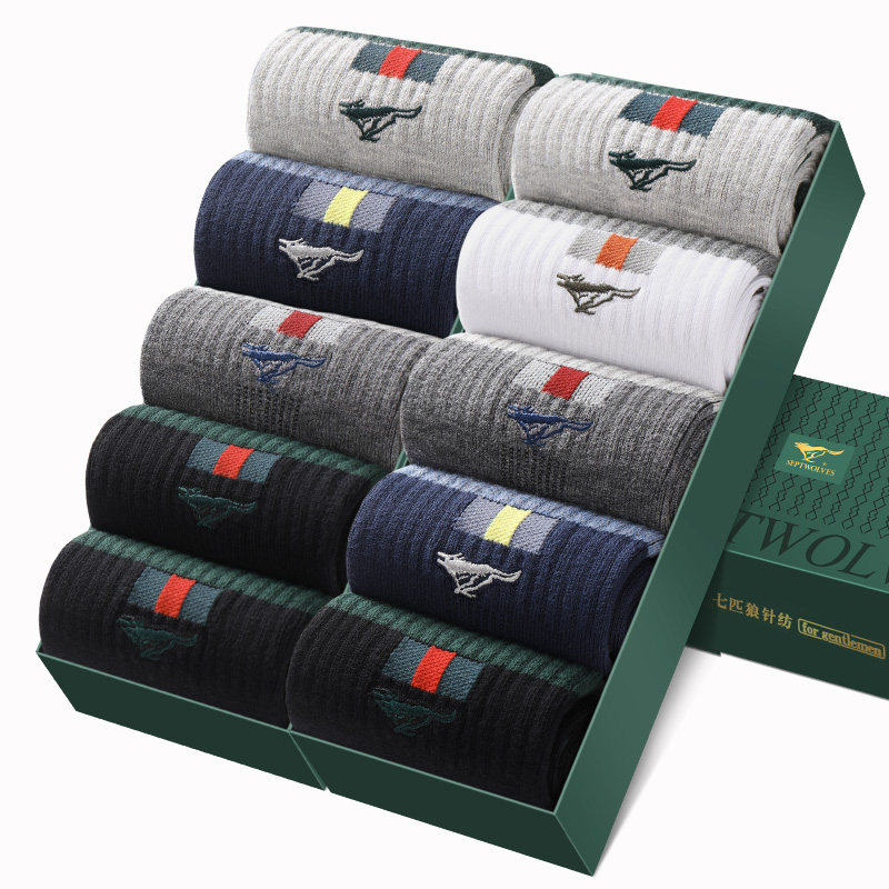 七匹狼男士袜子纯棉中筒男袜休闲商务吸湿排汗防臭男人袜全棉袜子