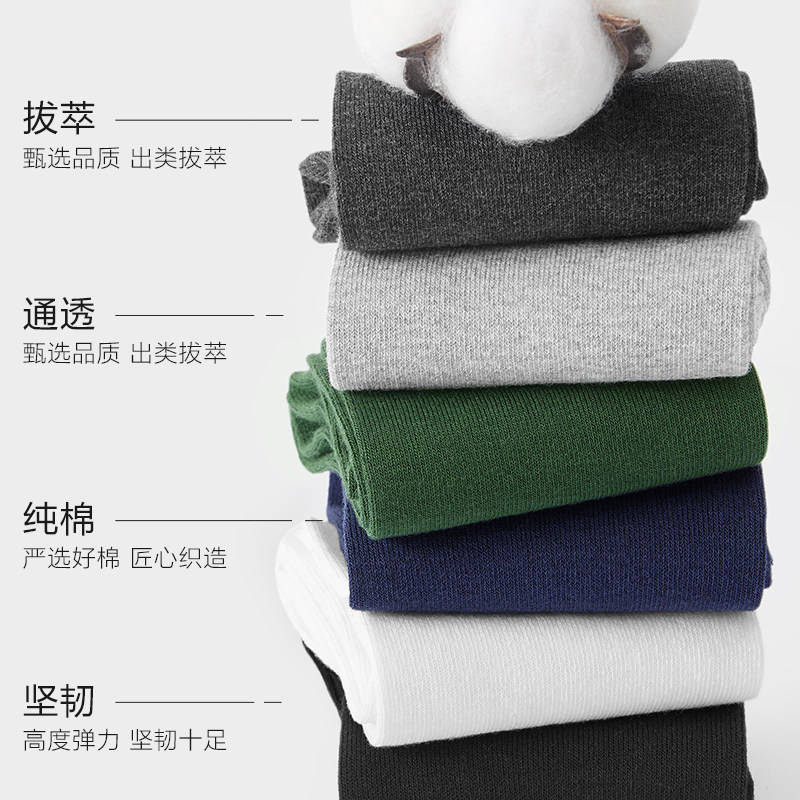 中筒男袜双针秋冬季加厚纯棉袜纯色吸汗商务男款防臭抗菌长棉袜