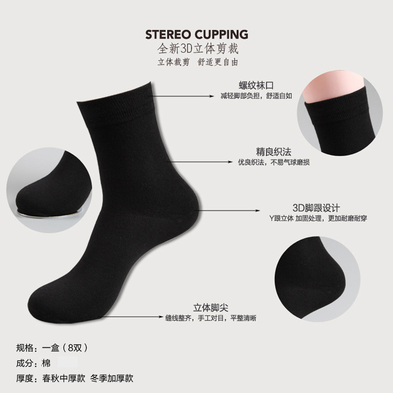淘宝女袜 纯棉中筒袜 秋冬全棉男袜商务正装黑色袜子四季防臭透气袜子