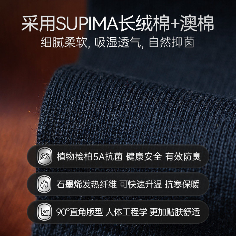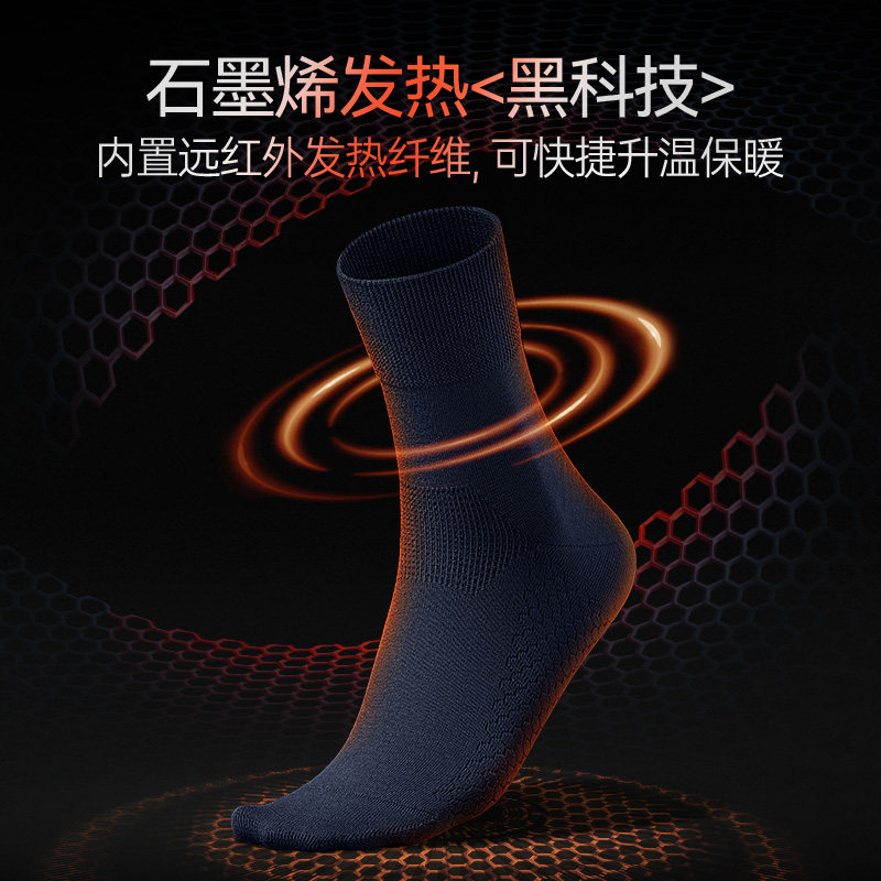 天猫石墨烯发热保暖袜子男士秋冬季男袜植物抗菌中筒商务袜直角棉袜
