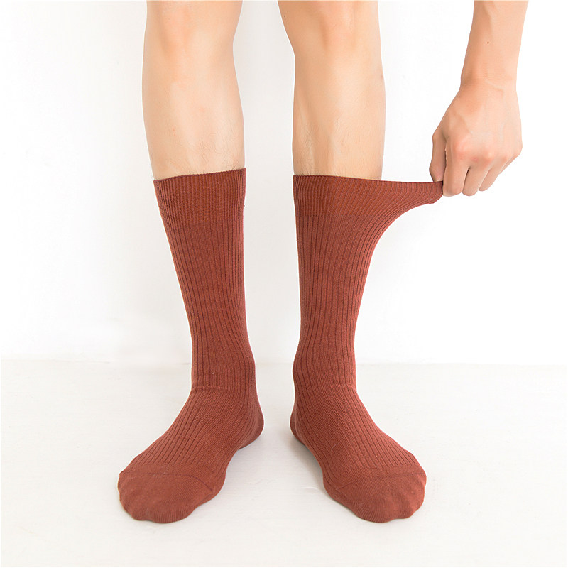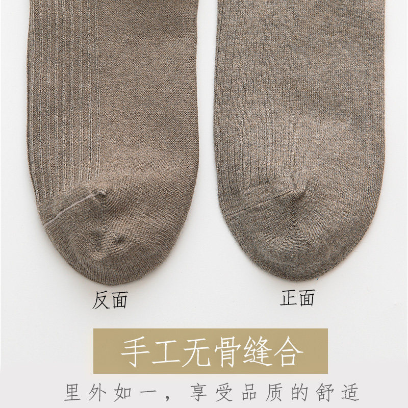 中筒男袜双针秋冬季加厚纯棉袜纯色吸汗商务男款防臭抗菌长棉袜