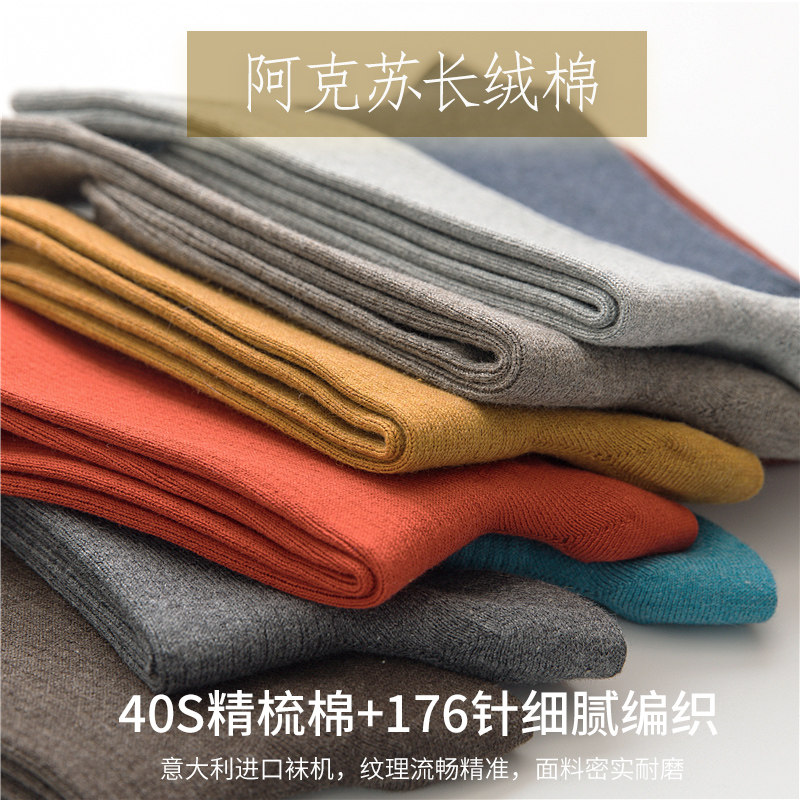淘中筒男袜双针秋冬季加厚纯棉袜纯色吸汗商务男款防臭抗菌长棉袜