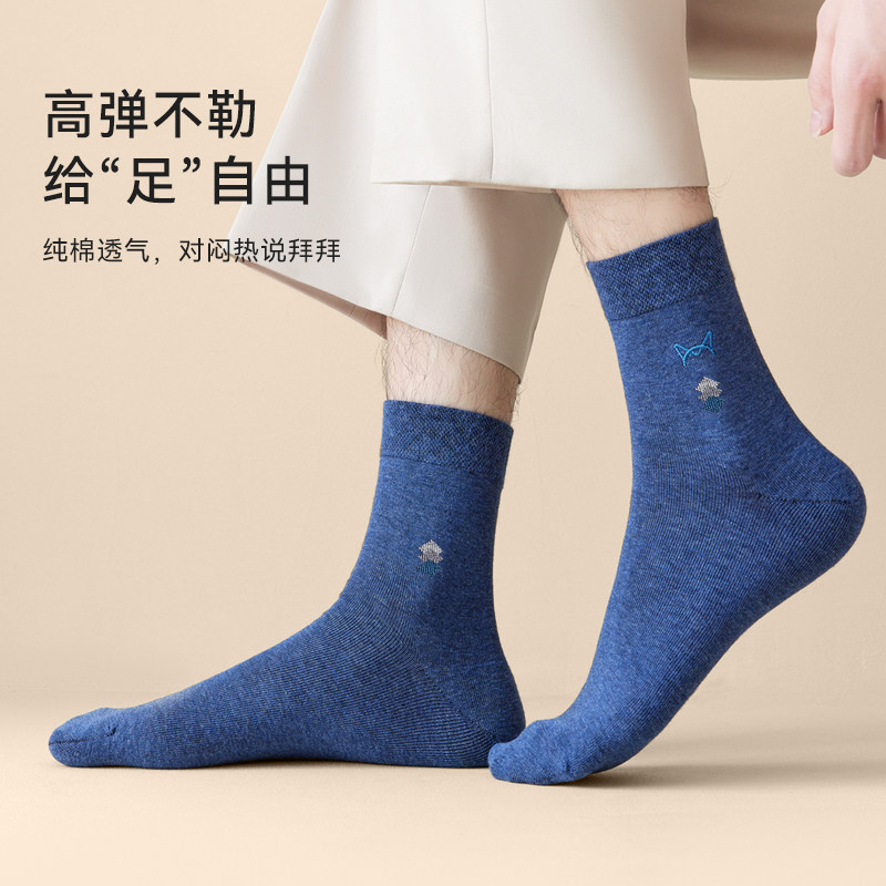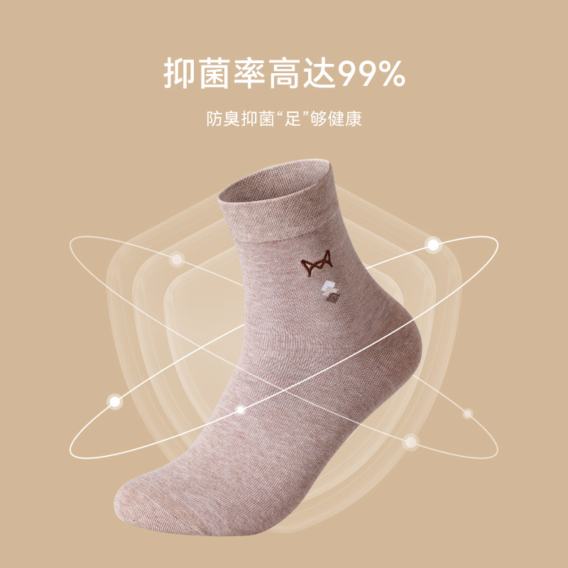 天猫猫人袜子男士中筒袜纯棉秋季款商务防臭抑菌男袜全棉吸汗透气长袜