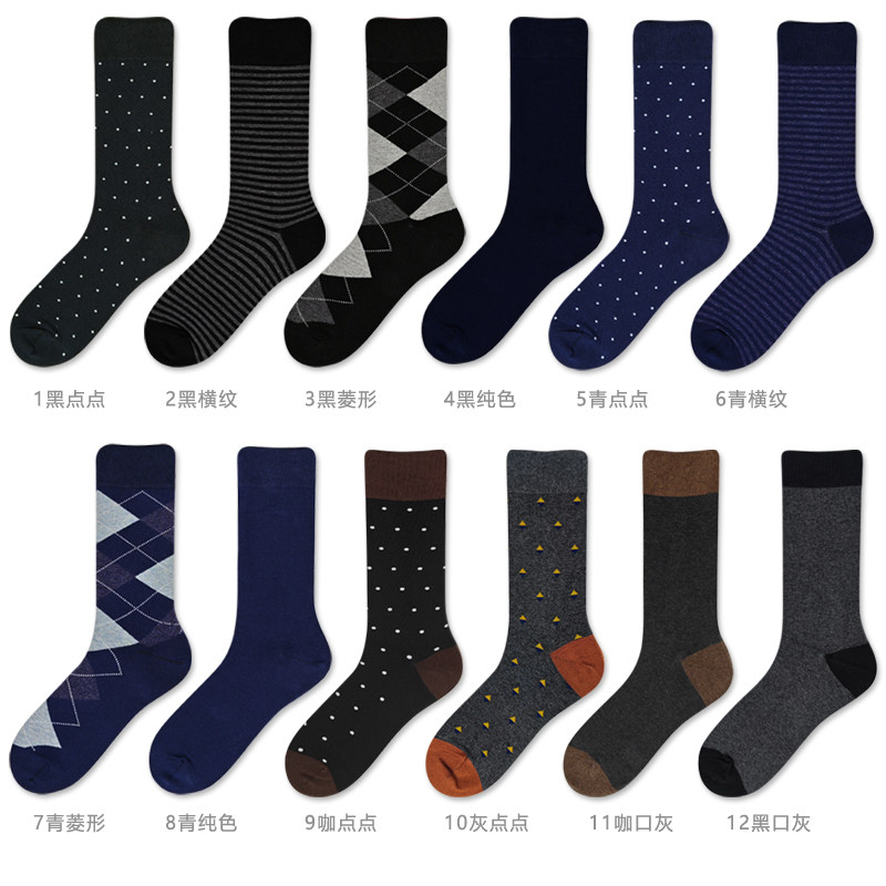淘宝加大码条纹黑色男袜菱形格纯棉秋季休闲商务西装袜纯色中筒袜子男