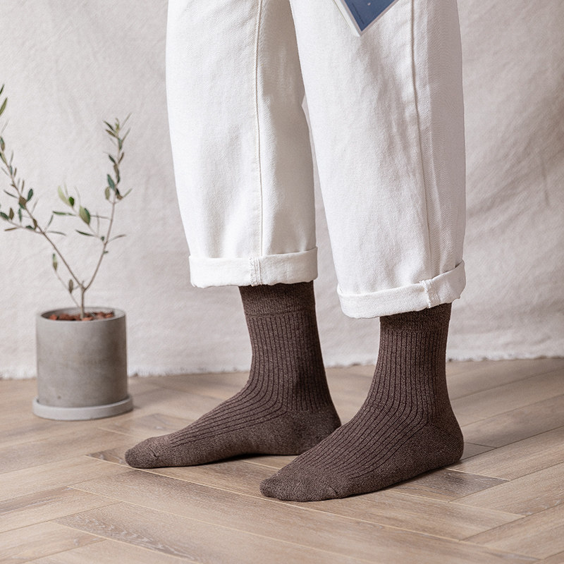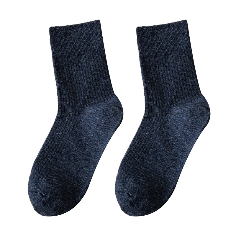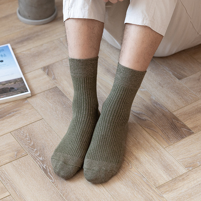 中筒男袜双针秋冬季加厚纯棉袜纯色吸汗商务男款防臭抗菌长棉袜