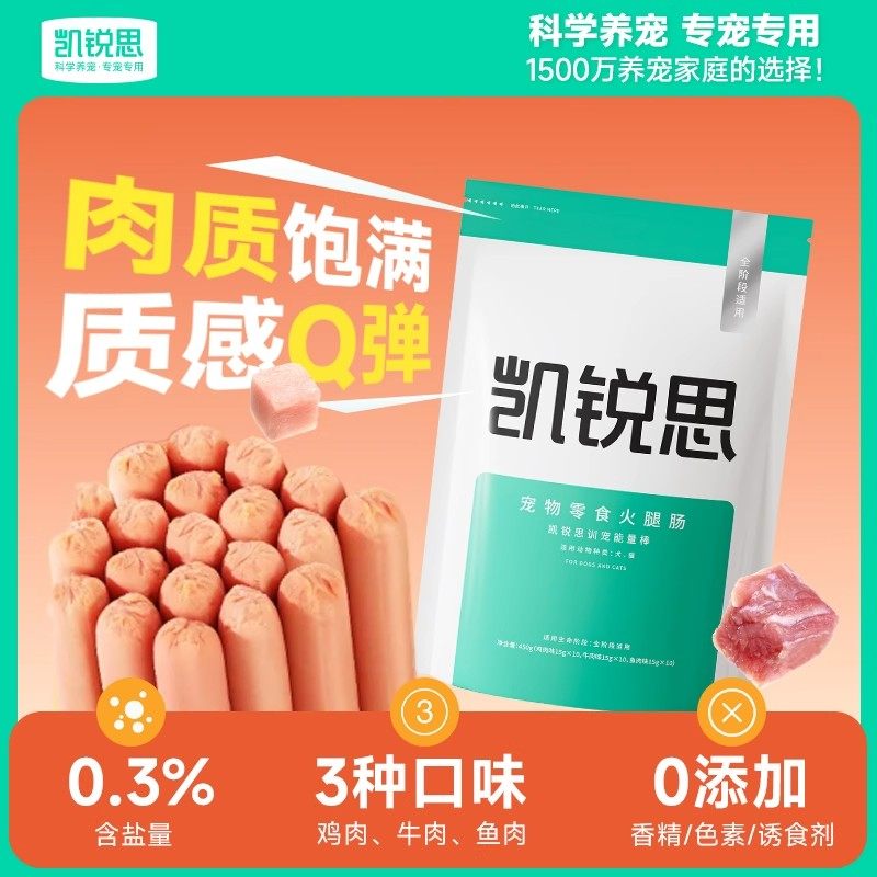 凯锐思宠物狗狗训练奖励零食火腿肠,专为泰迪、金毛、小型犬等宠物犬设计,是训宠过程中的理想奖励食品。精选优质原料,口感香嫩,富含蛋白质,营养丰富且易消化。独特的小段式设计,方便主人精准投喂,避免过量摄入。无添加人工色素与防腐剂,安全健康,让爱犬吃得开心,主人更放心。无论是日常训练、行为纠正还是互动奖励,凯锐思火腿肠都能有效提升狗狗的服从性与积极性。其浓郁的肉香极易吸引注意力,帮助建立良好习惯。适用于各年龄段犬只,是宠物主人与爱宠沟通的贴心助手,让训练更高效、更愉快。