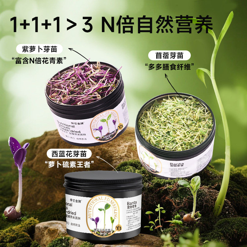 天猫伴它金牌苜蓿牙苗紫萝卜芽苗狗狗零食冻干大礼包天然草本配餐辅食