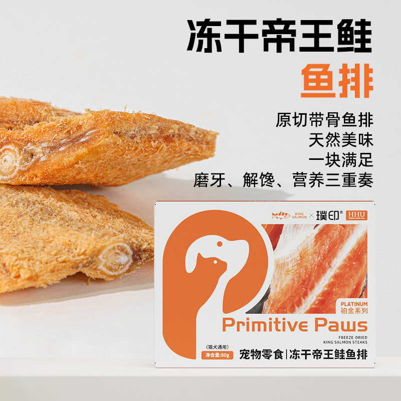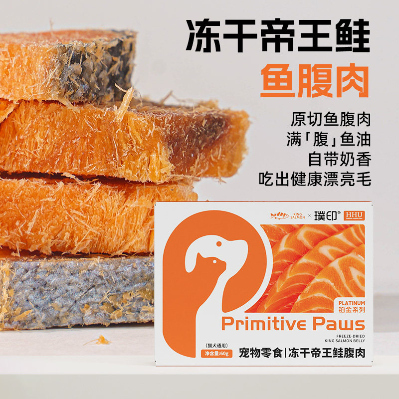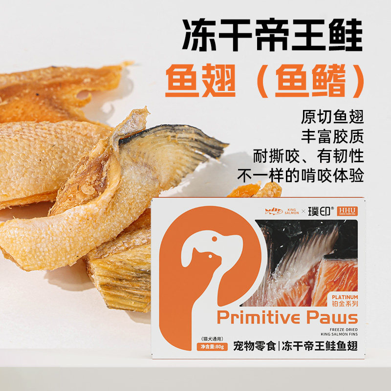 天猫【新品】璞印冻干帝王鲑鱼腹肉鱼排鱼翅三文鱼宠物猫狗生骨肉零食