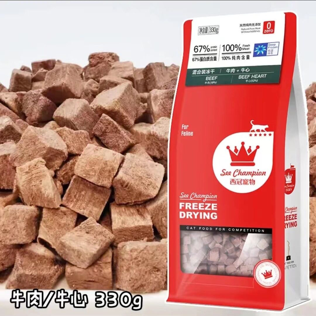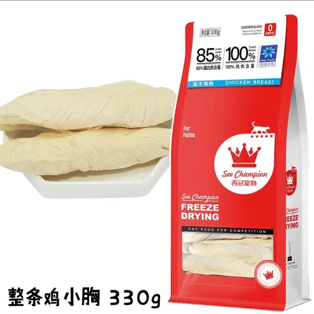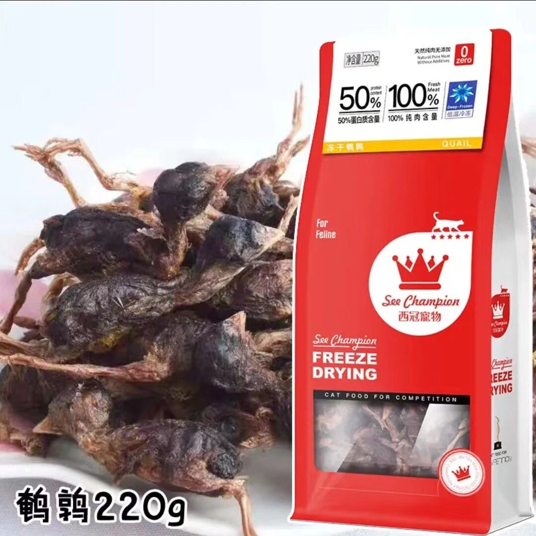 淘宝西冠冻干零食鸡肉粒鸭肉牛肉心鹌鹑三文鱼增肥发腮生骨肉粒鸵鸟鹿