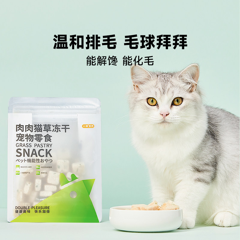天猫【小佩营养】猫草冻干45g鸡肉鳕鱼猫咪零食宠物发腮排出毛球