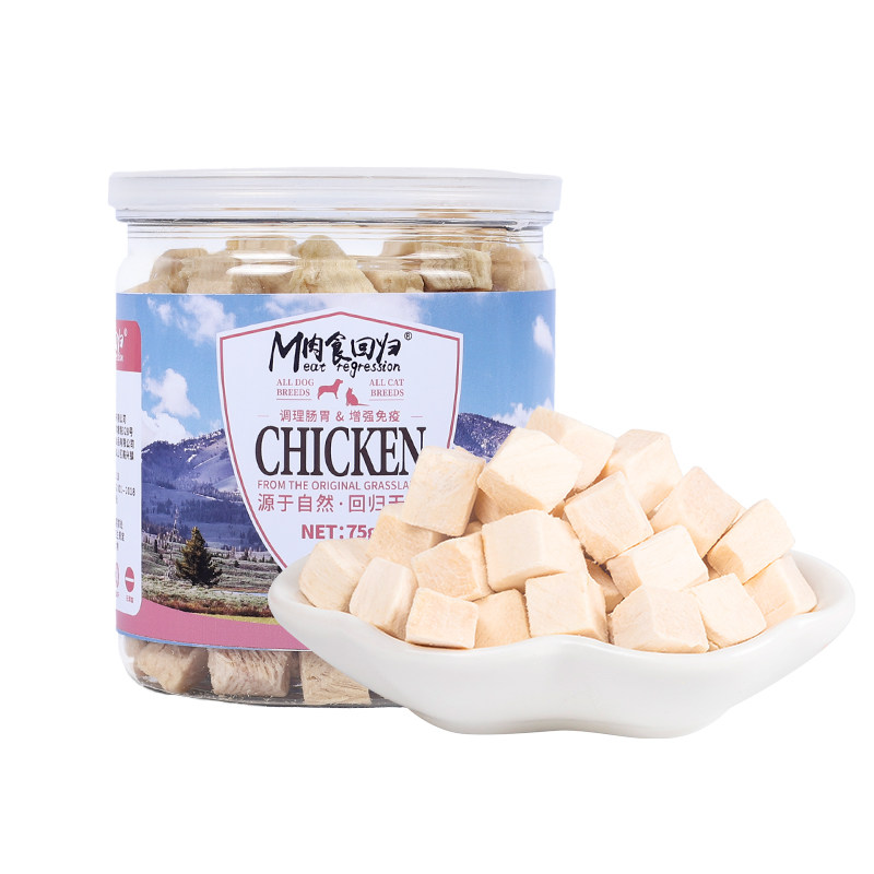 天猫肉食回归猫狗冻干鸡肉粒混合生骨肉宠物零食成幼猫狗通用奖励拌粮