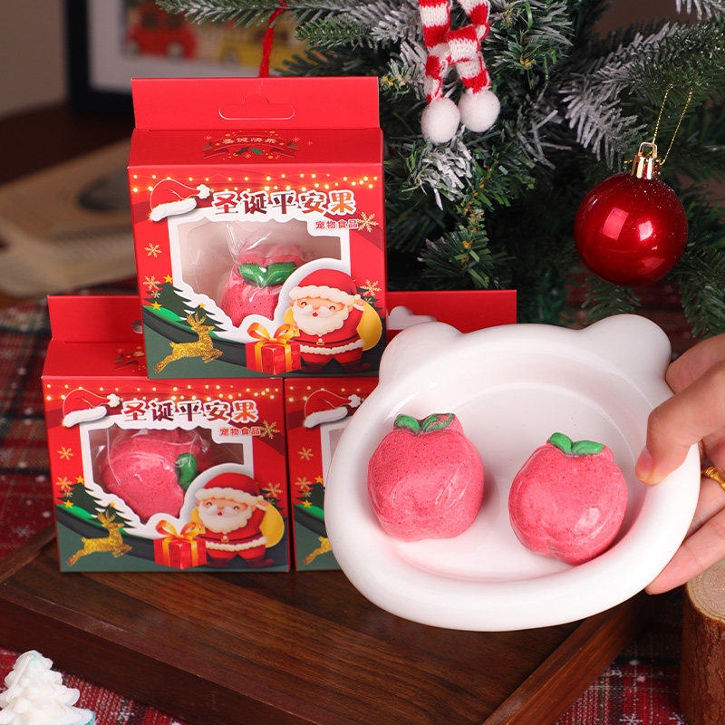 这款狗狗圣诞节礼物——冻干平安果零食,是专为宠物精心设计的营养小食。采用优质鲜鸡肉为主料,搭配天然苹果冻干,口感酥脆、风味鲜美,富含蛋白质与维生素,助力宠物健康。低温冻干工艺锁住营养与原味,无添加防腐剂,安全放心。不仅适合狗狗日常零食或训练奖励,猫咪也同样喜爱。圣诞季特别造型“平安果”设计,寓意平安吉祥,是节日里送给毛孩子的暖心好礼。小巧便携,适口性强,增进人宠互动的同时,满足宠物对美味与营养的双重需求,让爱宠在节日里享受专属幸福时光。