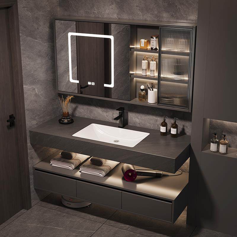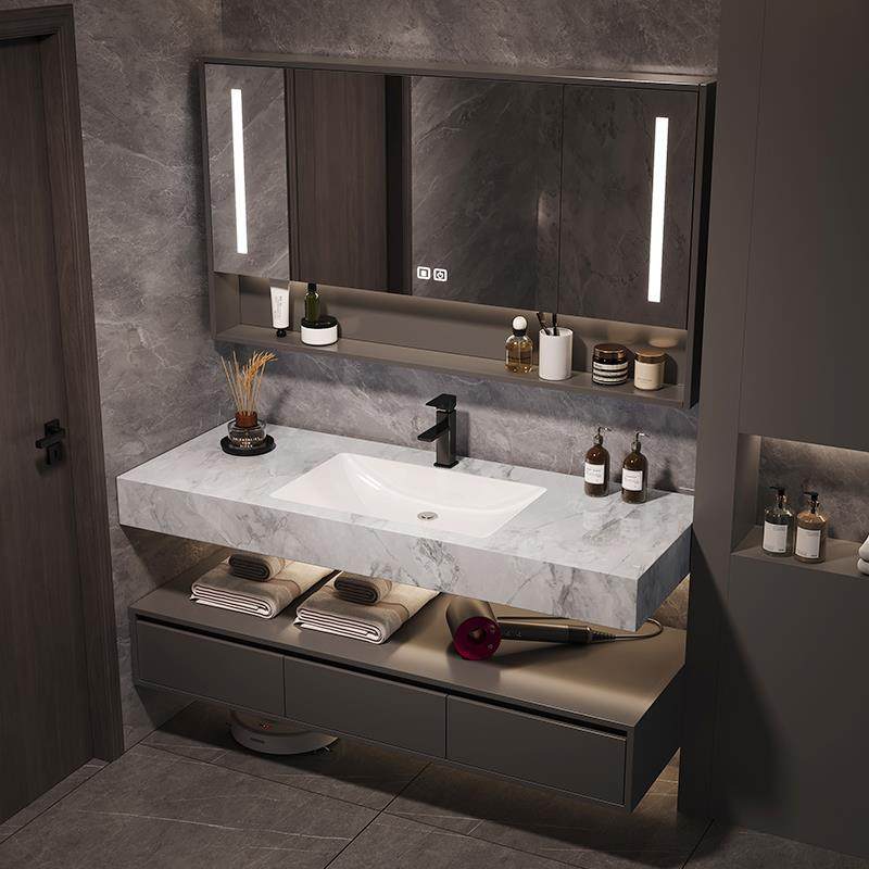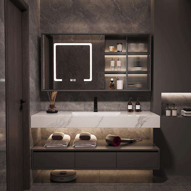 酒店风岩板陶瓷无缝一体盆智能浴室柜组合洗手洗脸化妆室洗漱台池
