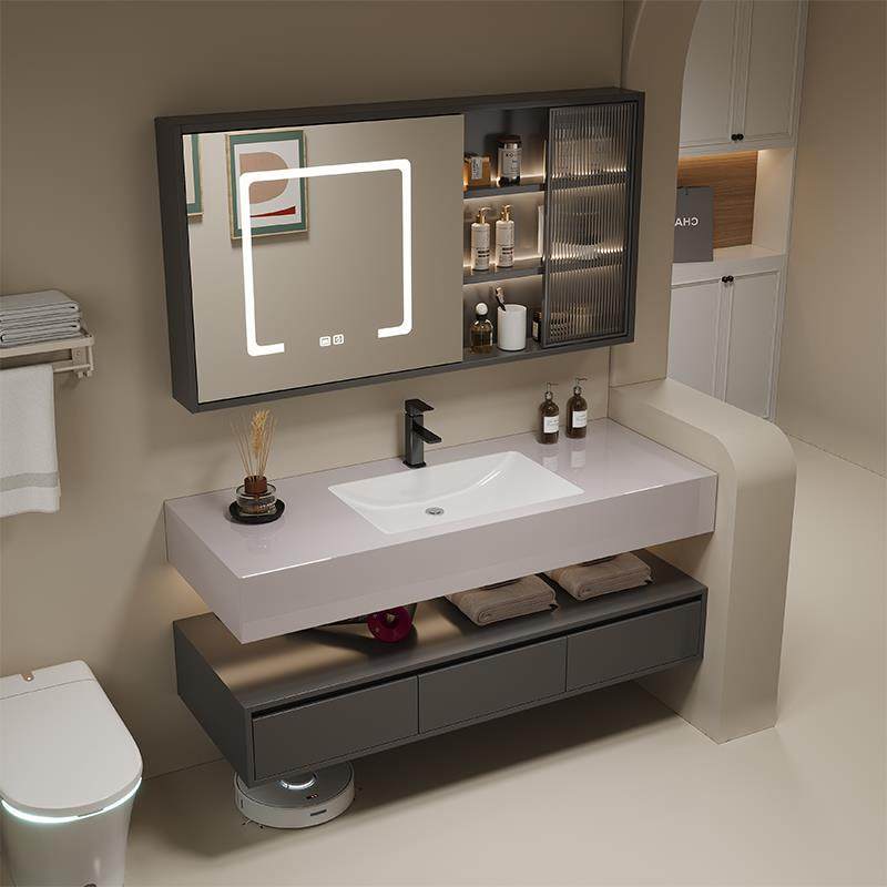 现代简约浴室柜组合陶瓷一体盆化妆室洗脸盆洗漱台智能收纳镜柜