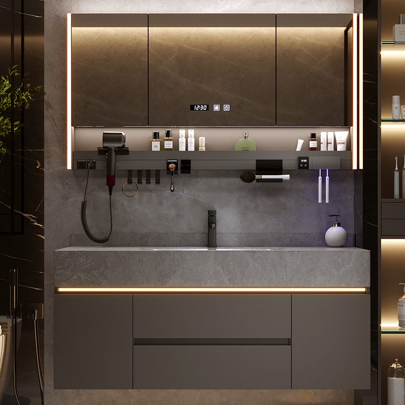 现代简约浴室柜组合陶瓷一体盆化妆室洗脸盆洗漱台智能收纳镜柜