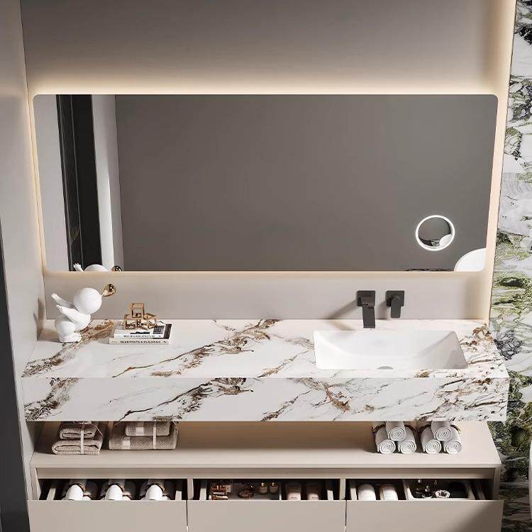 酒店风岩板陶瓷无缝一体盆智能浴室柜组合洗手洗脸化妆室洗漱台池