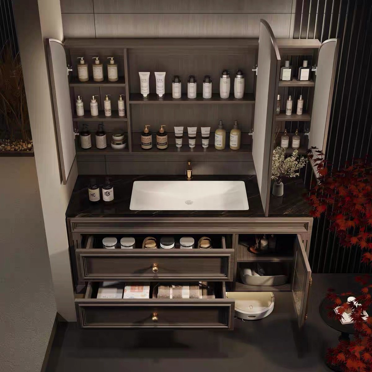 宋式美学浴室柜组合化妆室法式覆古一体陶瓷盆洗手台洗脸盆浴柜