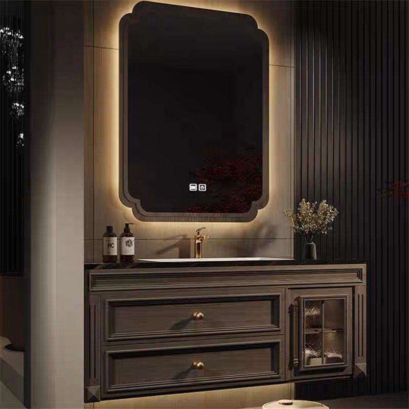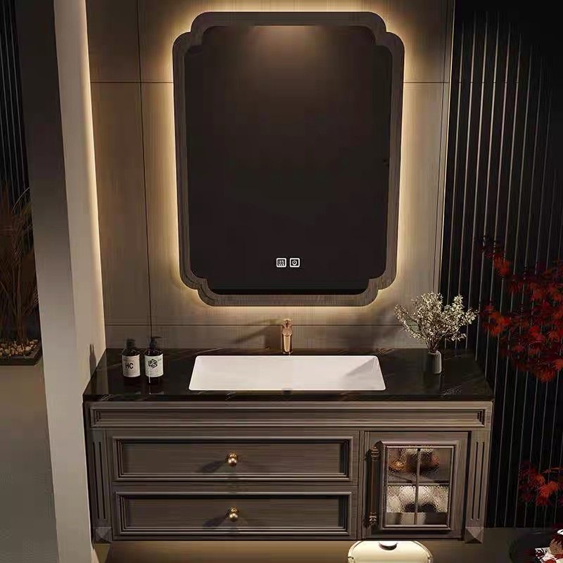 轻奢现代简约法式风智能镜浴室柜陶瓷一体岩板洗脸盆卫生间洗漱台