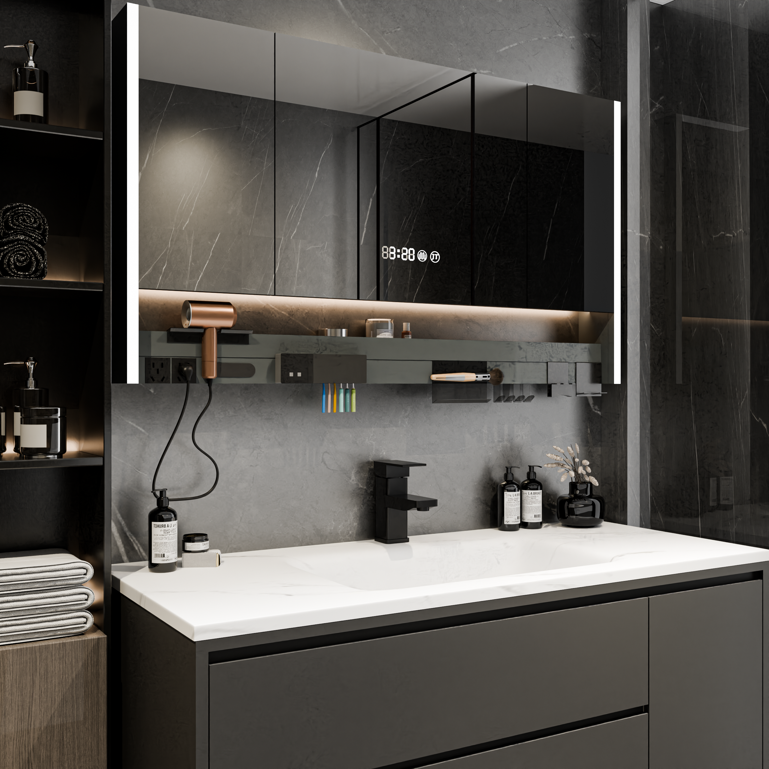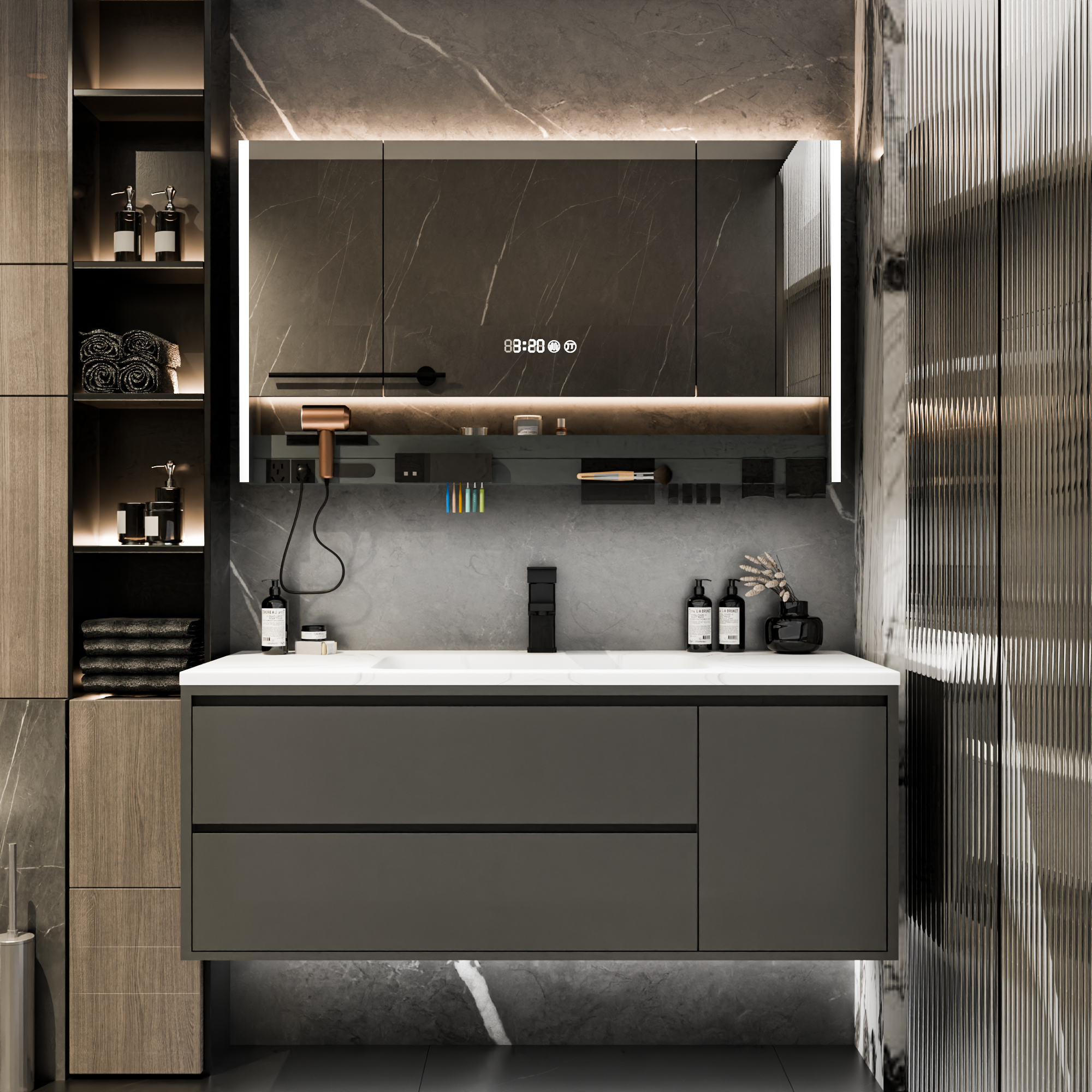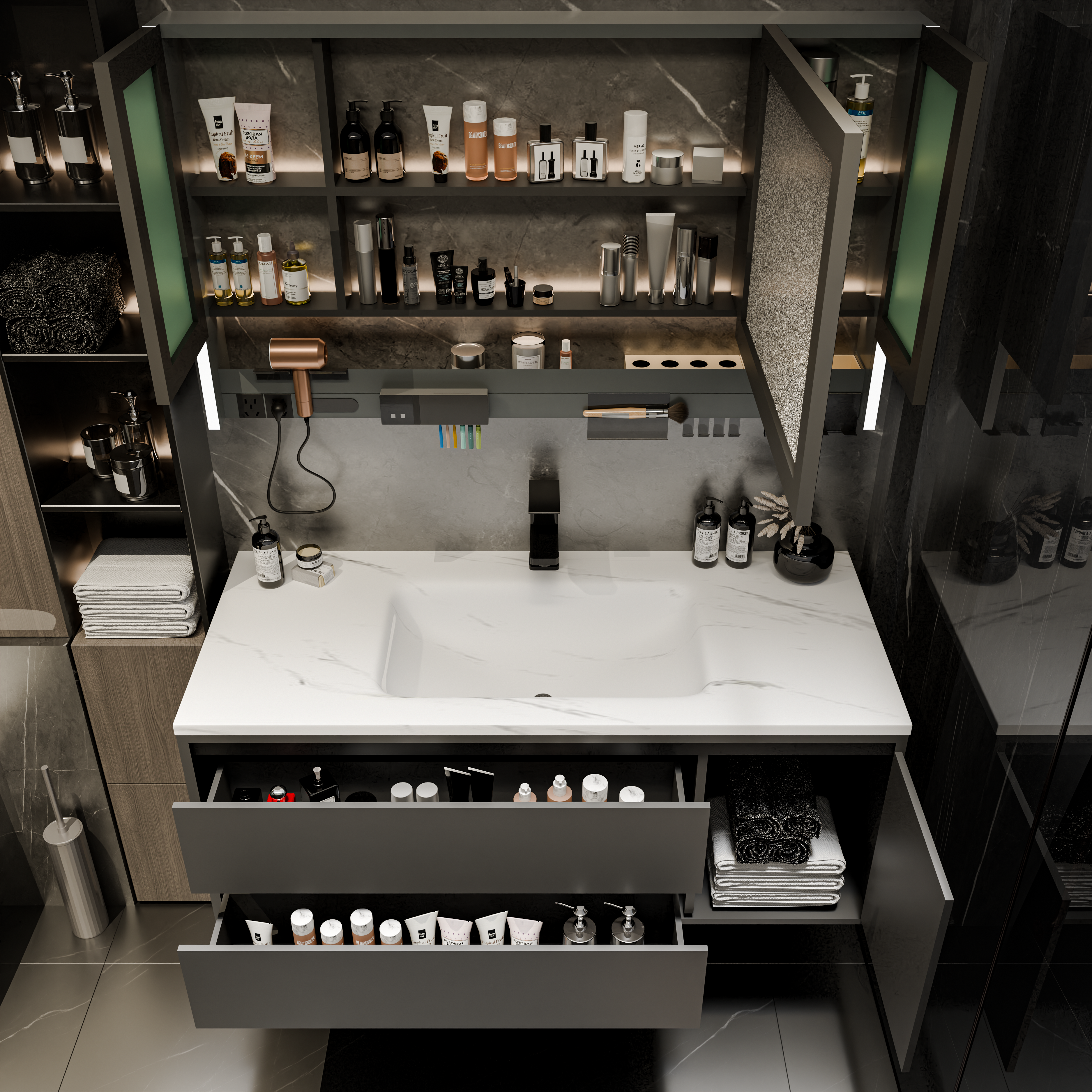 现代简约浴室柜组合陶瓷一体盆化妆室洗脸盆洗漱台智能收纳镜柜