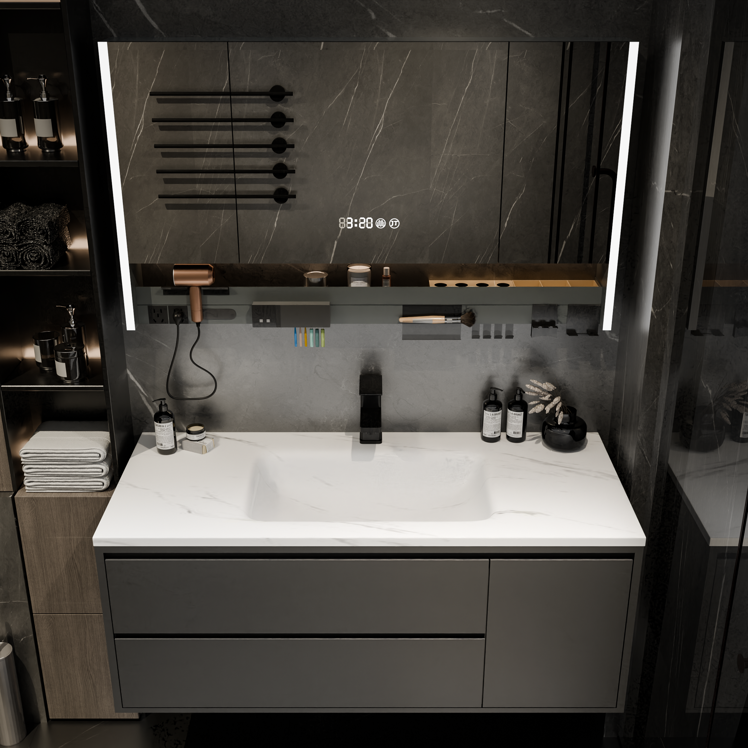 酒店风岩板陶瓷无缝一体盆智能浴室柜组合洗手洗脸化妆室洗漱台池