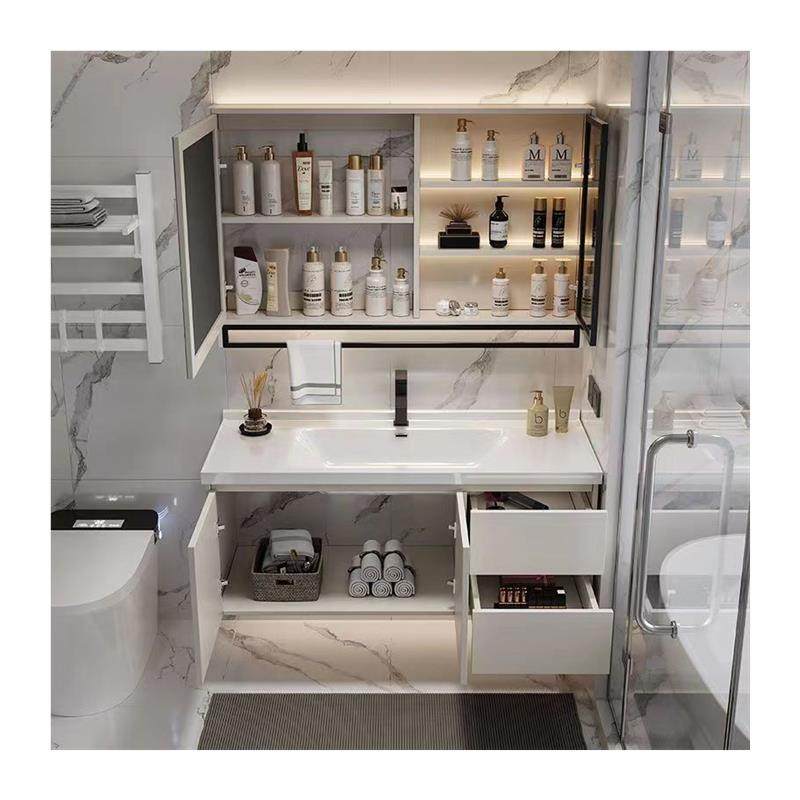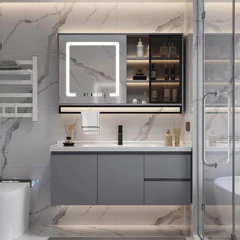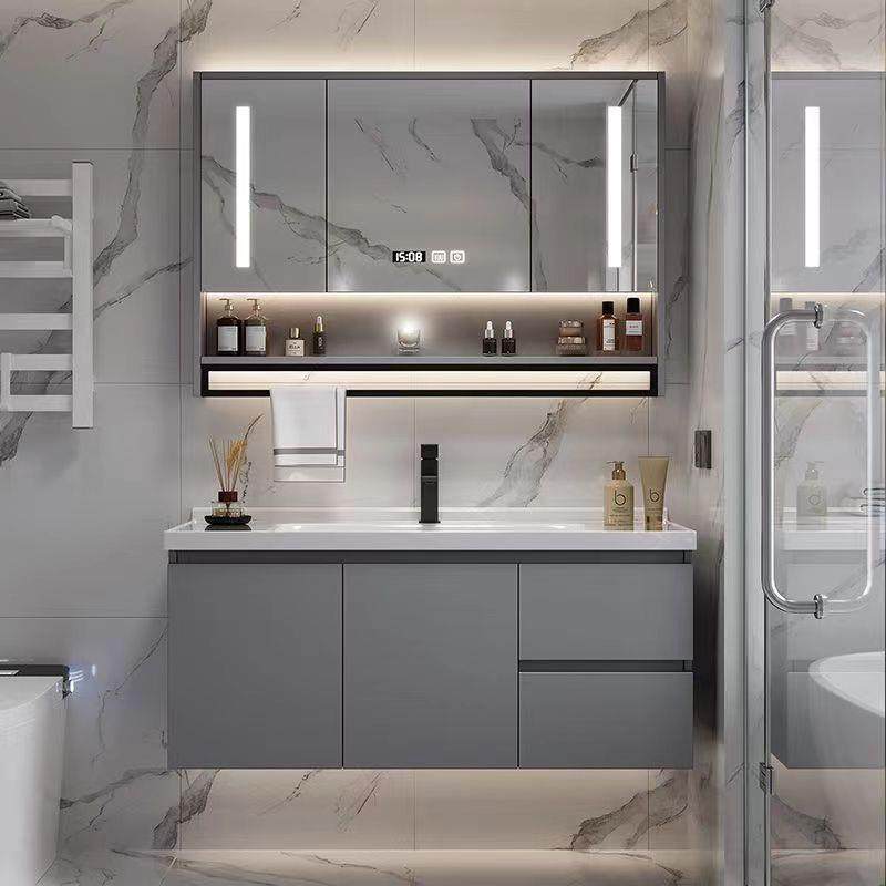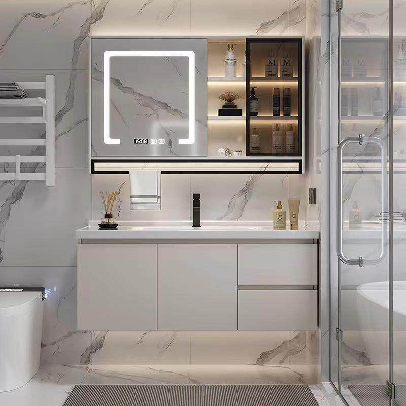 现代简约浴室柜组合陶瓷一体盆化妆室洗脸盆洗漱台智能收纳镜柜