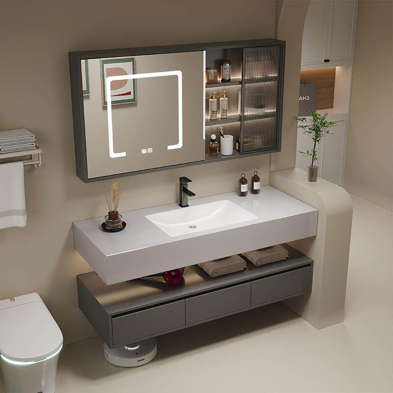 现代简约浴室柜组合陶瓷一体盆化妆室洗脸盆洗漱台智能收纳镜柜