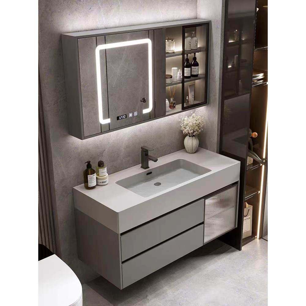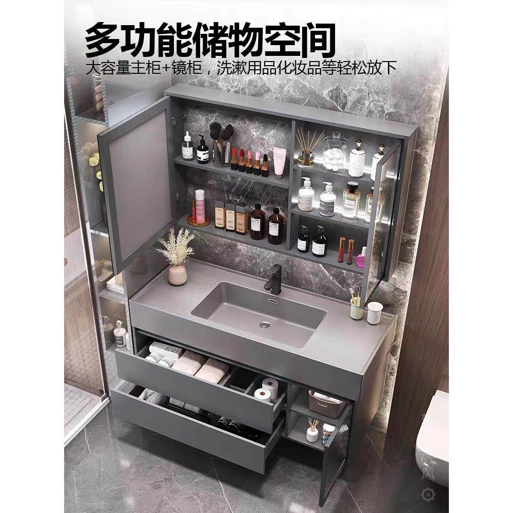 现代简约浴室柜组合陶瓷一体盆化妆室洗脸盆洗漱台智能收纳镜柜