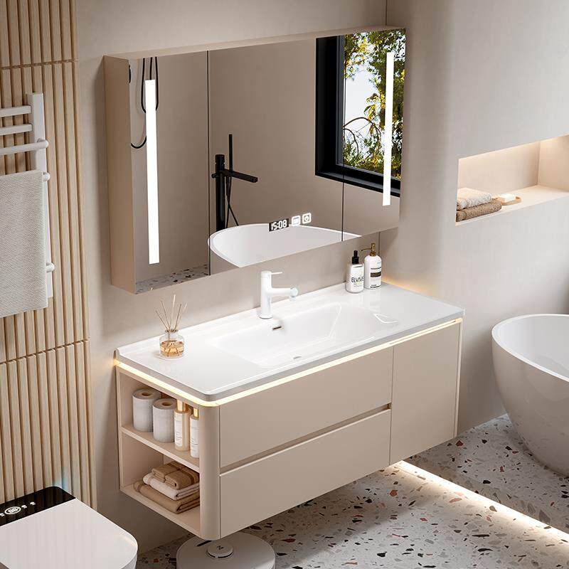 现代简约浴室柜组合陶瓷一体盆化妆室洗脸盆洗漱台智能收纳镜柜
