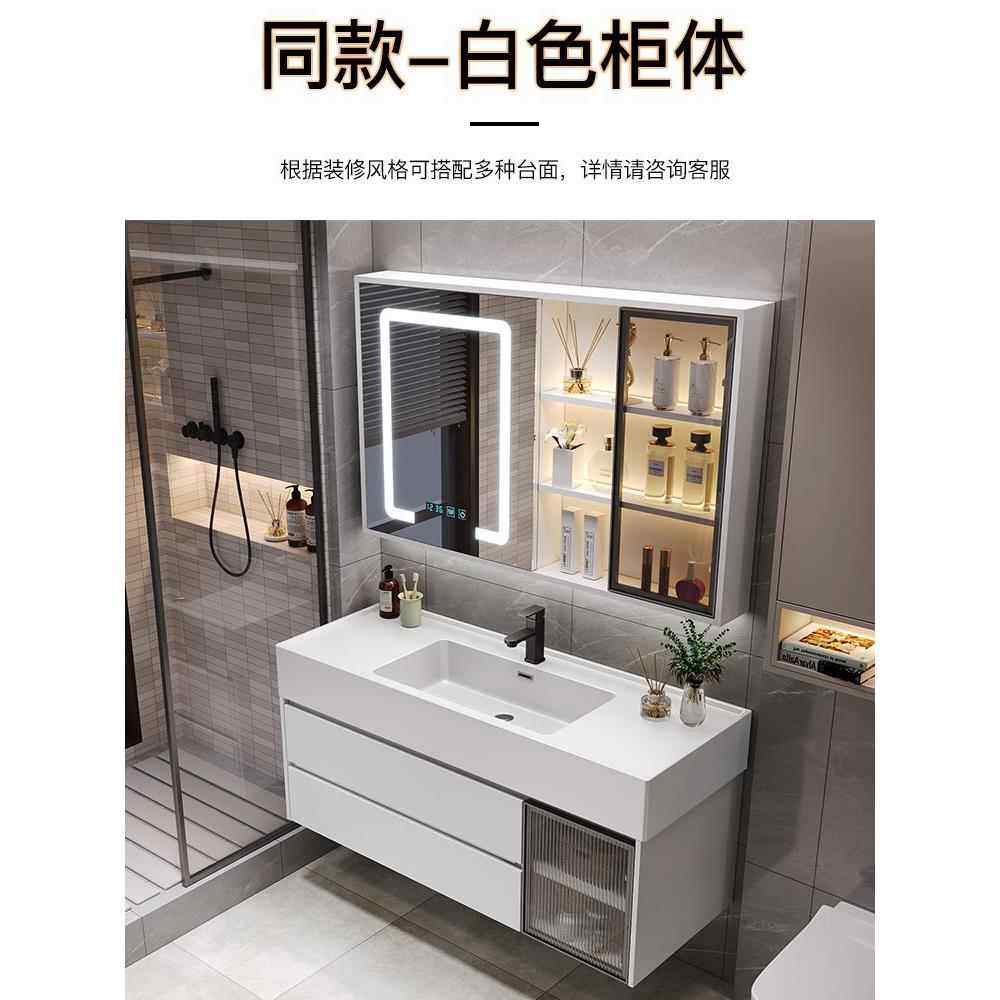 现代简约浴室柜组合陶瓷一体盆化妆室洗脸盆洗漱台智能收纳镜柜