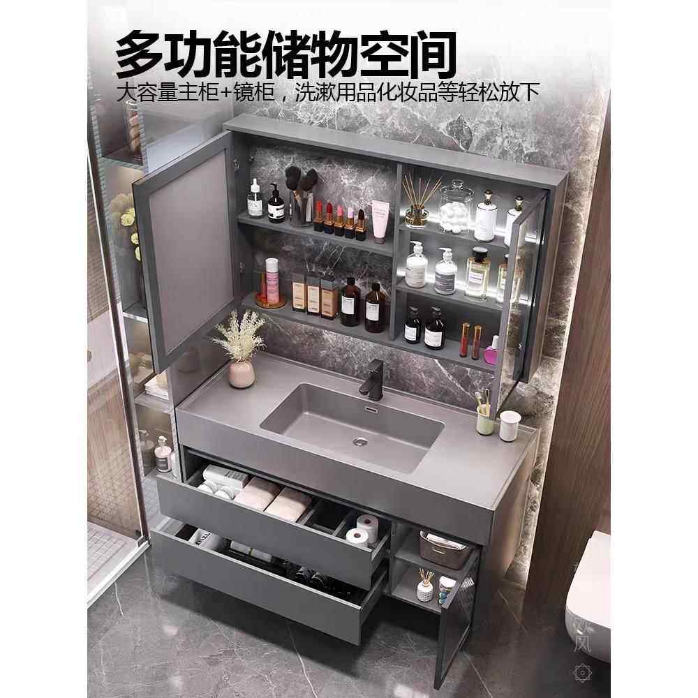 酒店风岩板陶瓷无缝一体盆智能浴室柜组合洗手洗脸卫生间洗漱台池