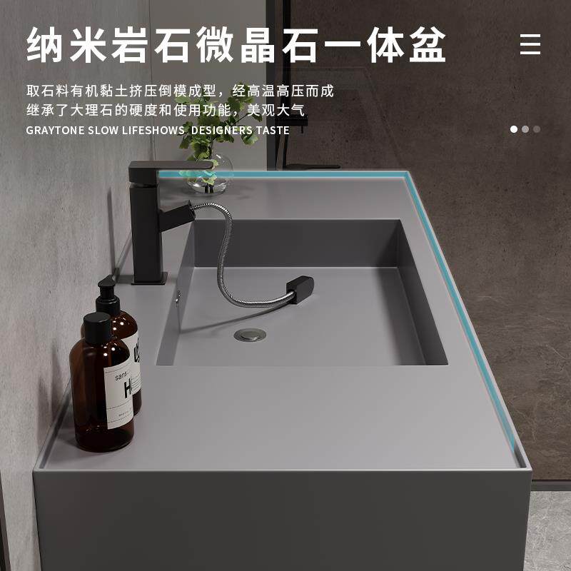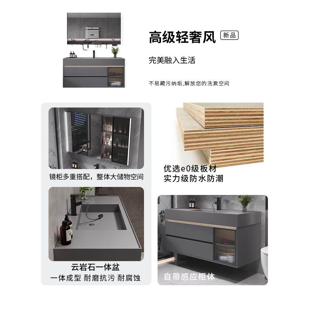 酒店风岩板陶瓷无缝一体盆智能浴室柜组合洗手洗脸卫生间洗漱台池