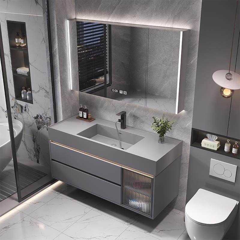 现代简约浴室柜组合陶瓷一体盆化妆室洗脸盆洗漱台智能收纳镜柜
