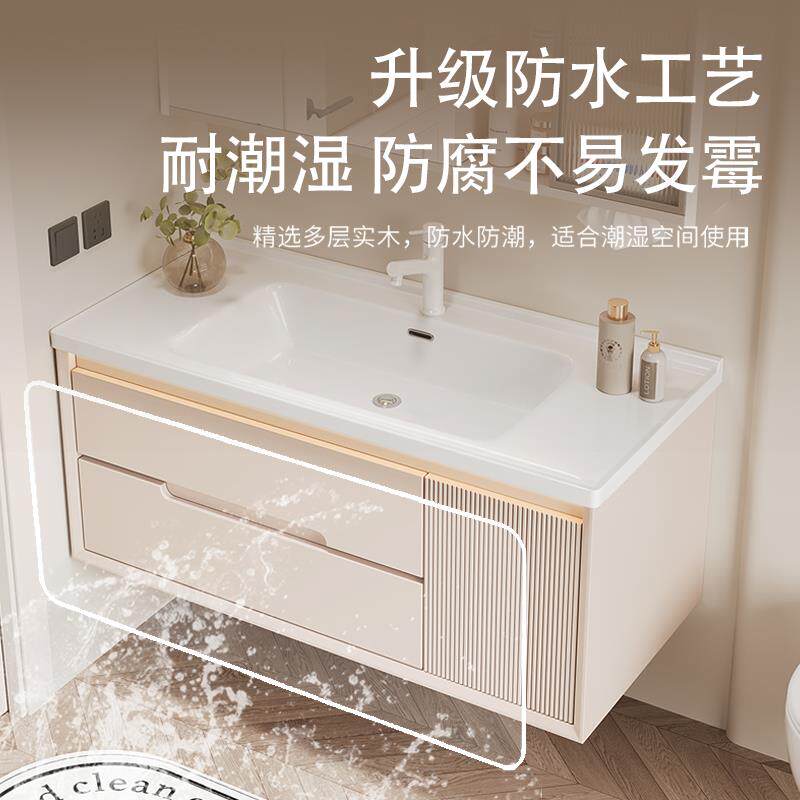 天猫面盆柜洗漱台一体盆小户型洗漱池奶油风陶瓷浴室柜卫生间洗手盆洗