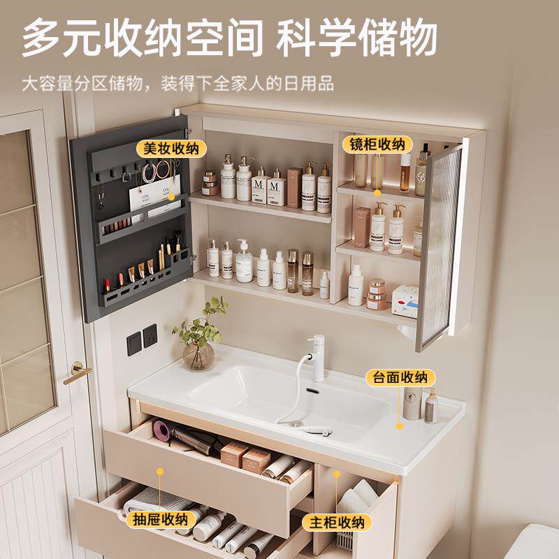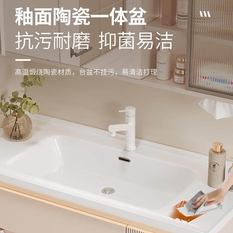 现代简约浴室柜组合陶瓷一体盆化妆室洗脸盆洗漱台智能收纳镜柜