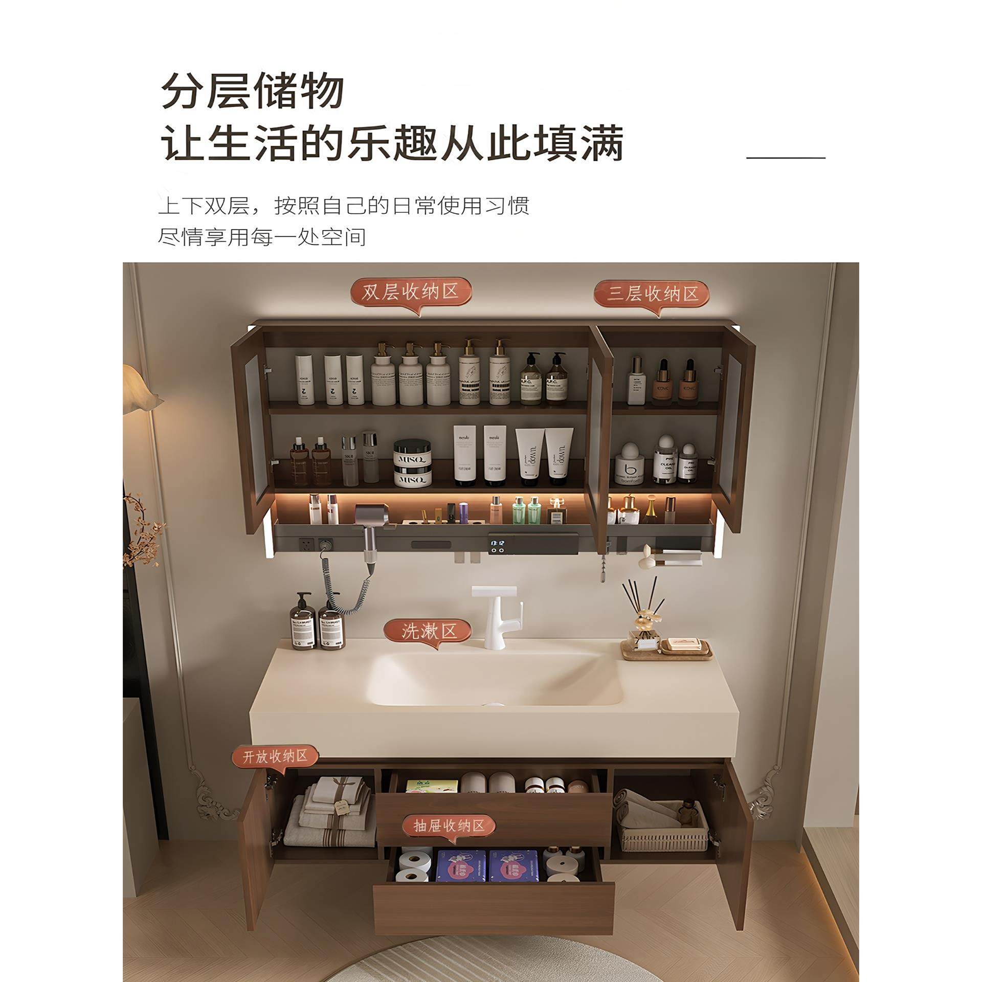 现代简约浴室柜组合陶瓷一体盆化妆室洗脸盆洗漱台智能收纳镜柜