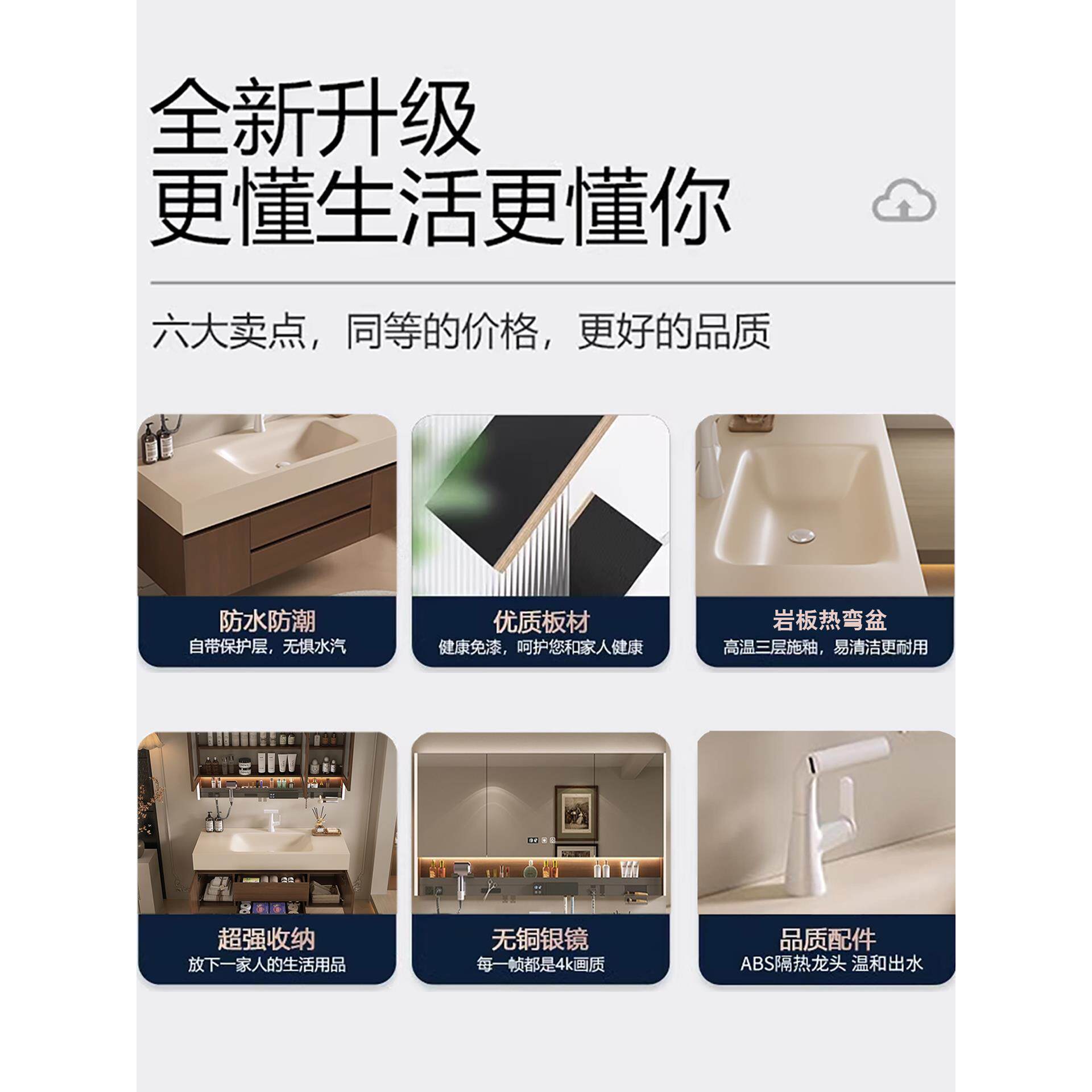 淘现代简约浴室柜组合陶瓷一体盆化妆室洗脸盆洗漱台智能收纳镜柜