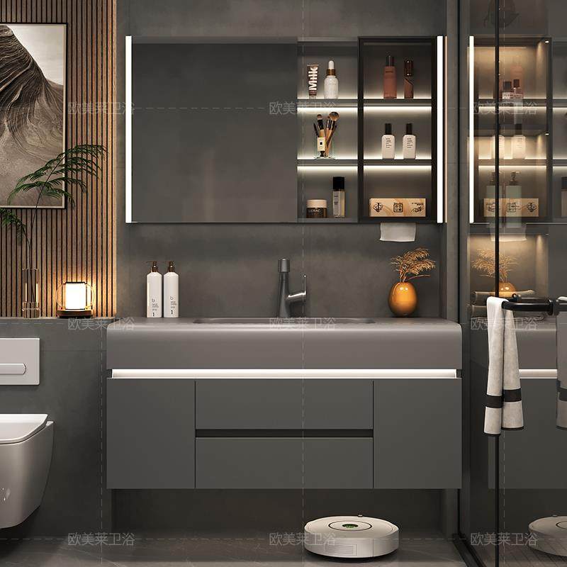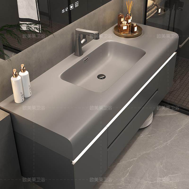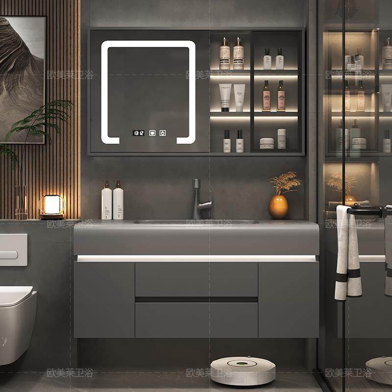 酒店风岩板陶瓷无缝一体盆智能浴室柜组合洗手洗脸化妆室洗漱台池