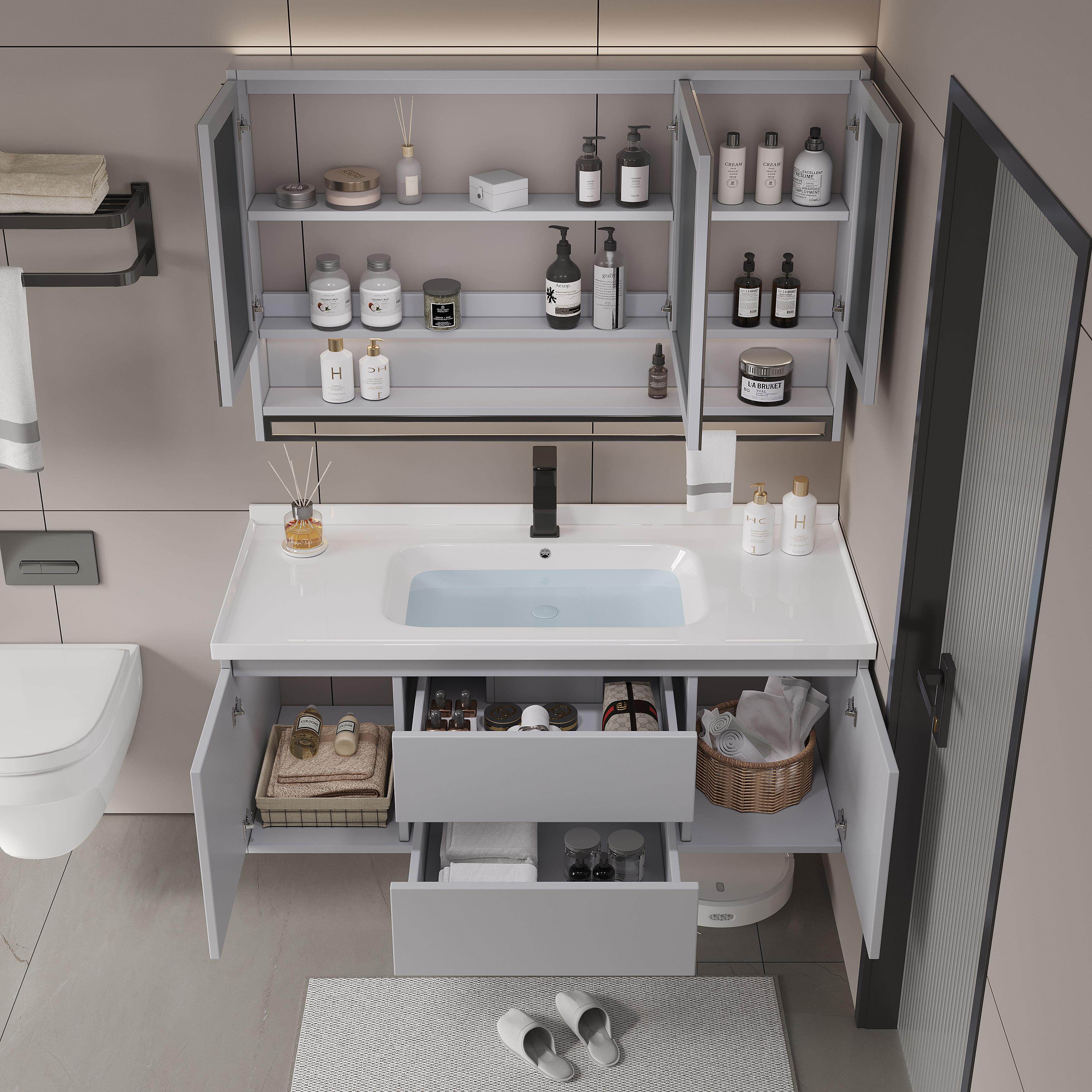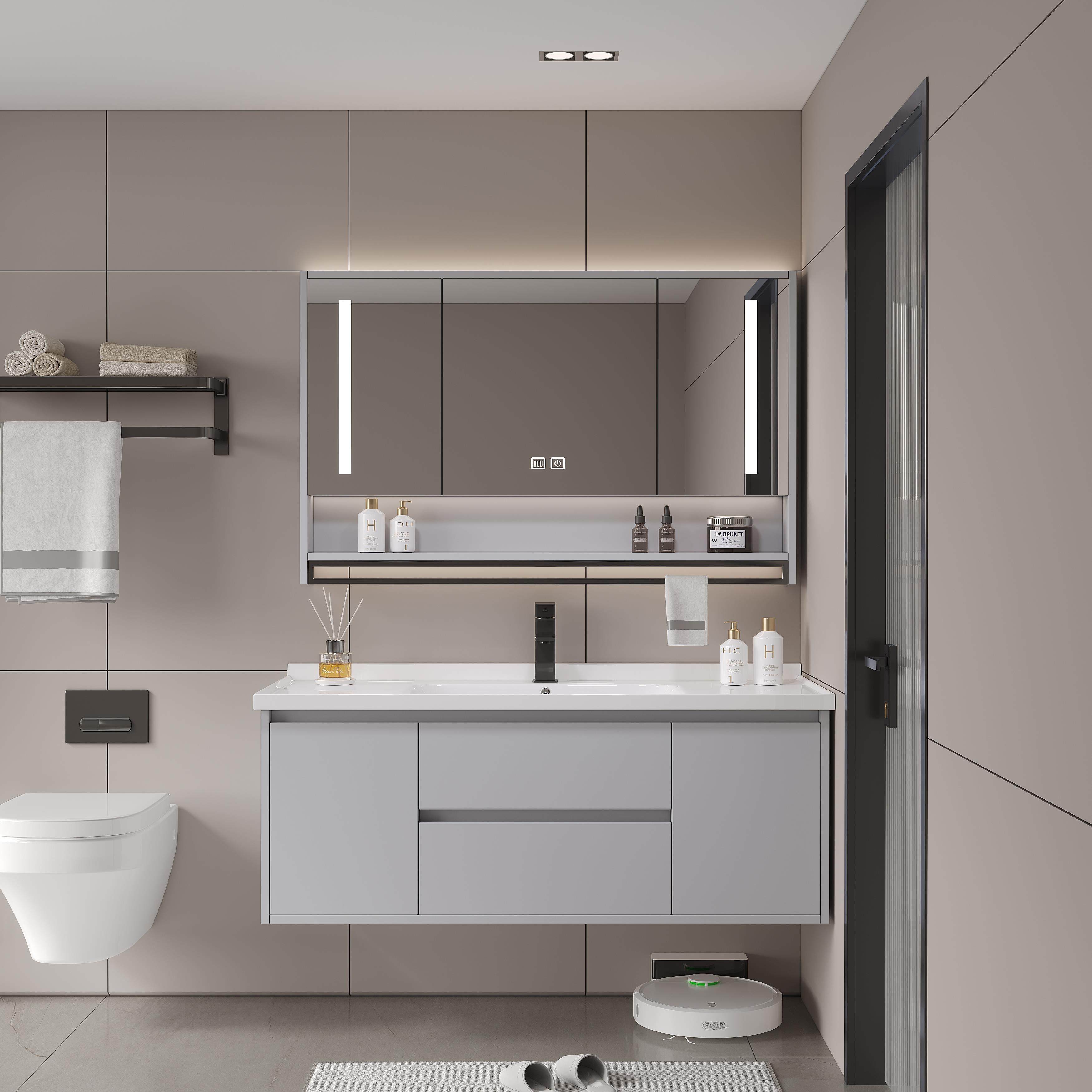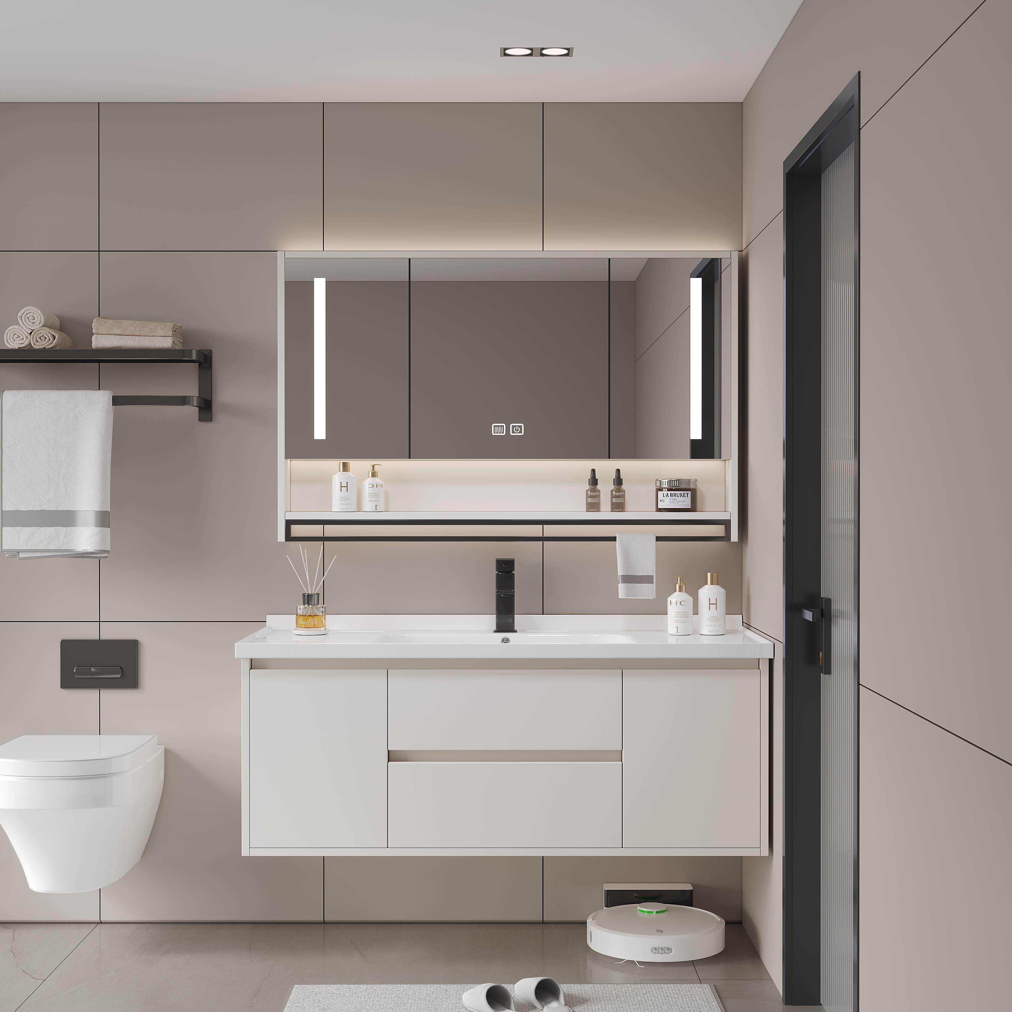 现代简约浴室柜组合陶瓷一体盆化妆室洗脸盆洗漱台智能收纳镜柜