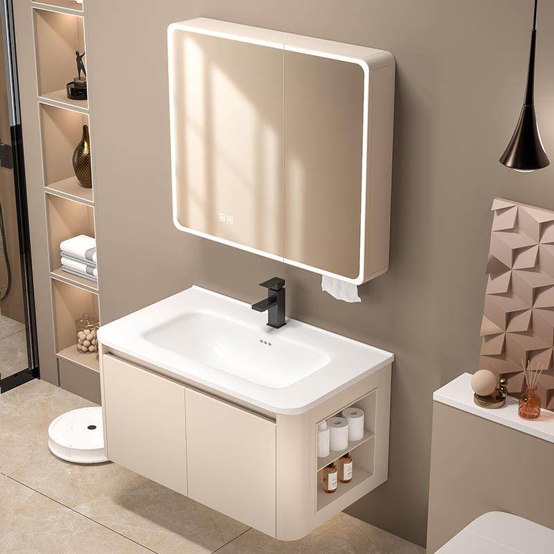 现代简约浴室柜组合陶瓷一体盆化妆室洗脸盆洗漱台智能收纳镜柜